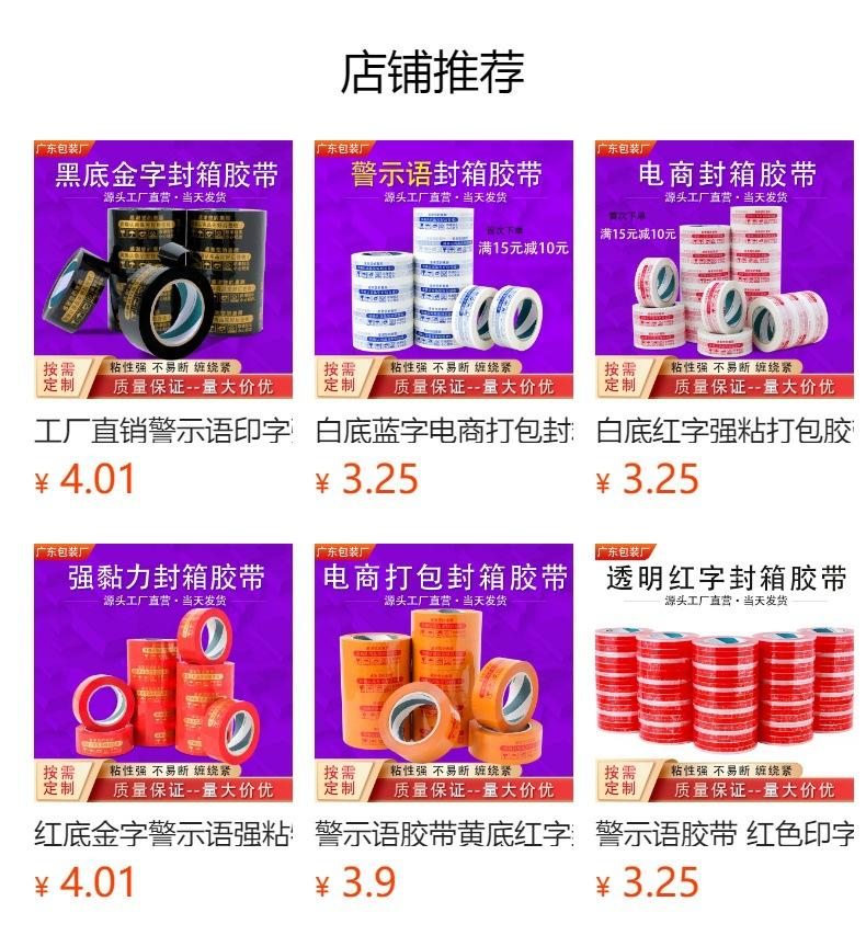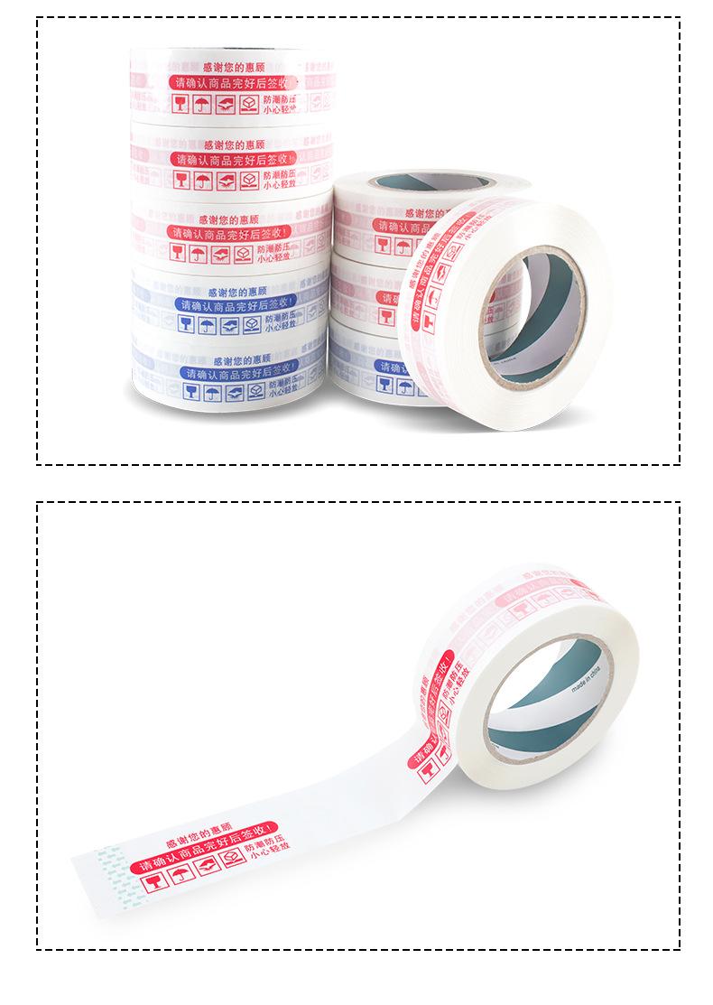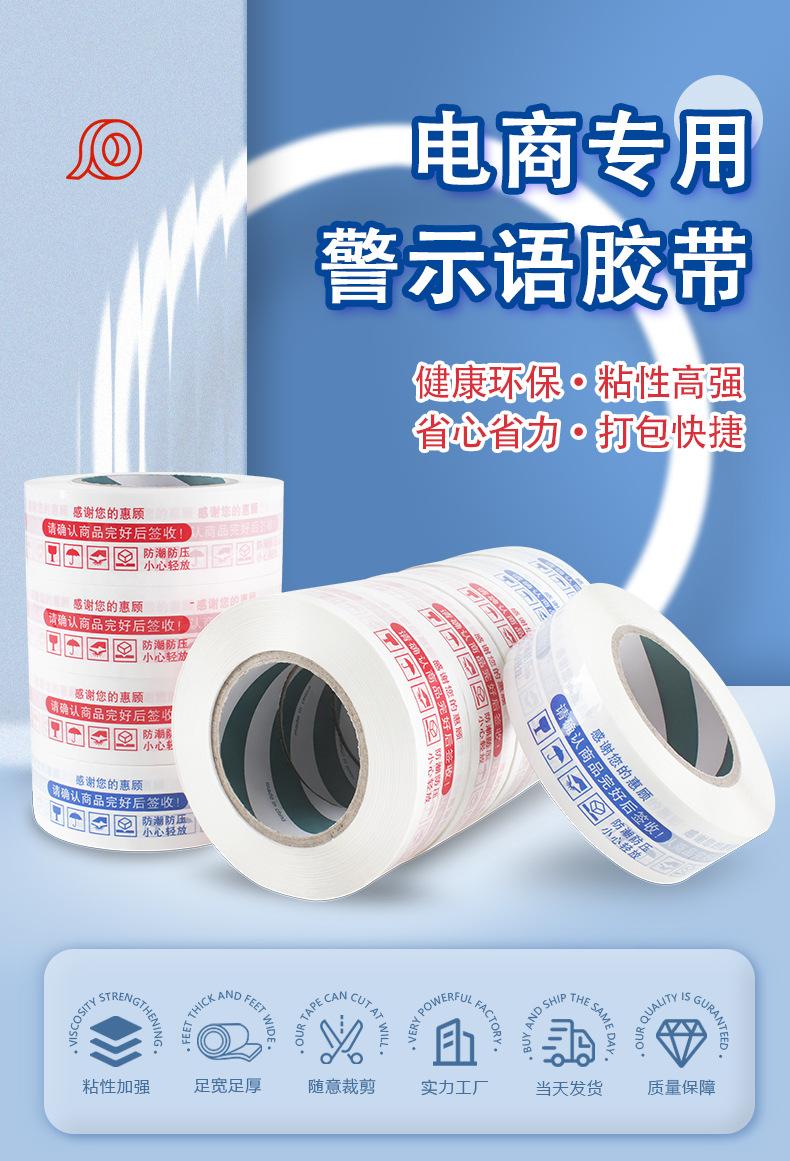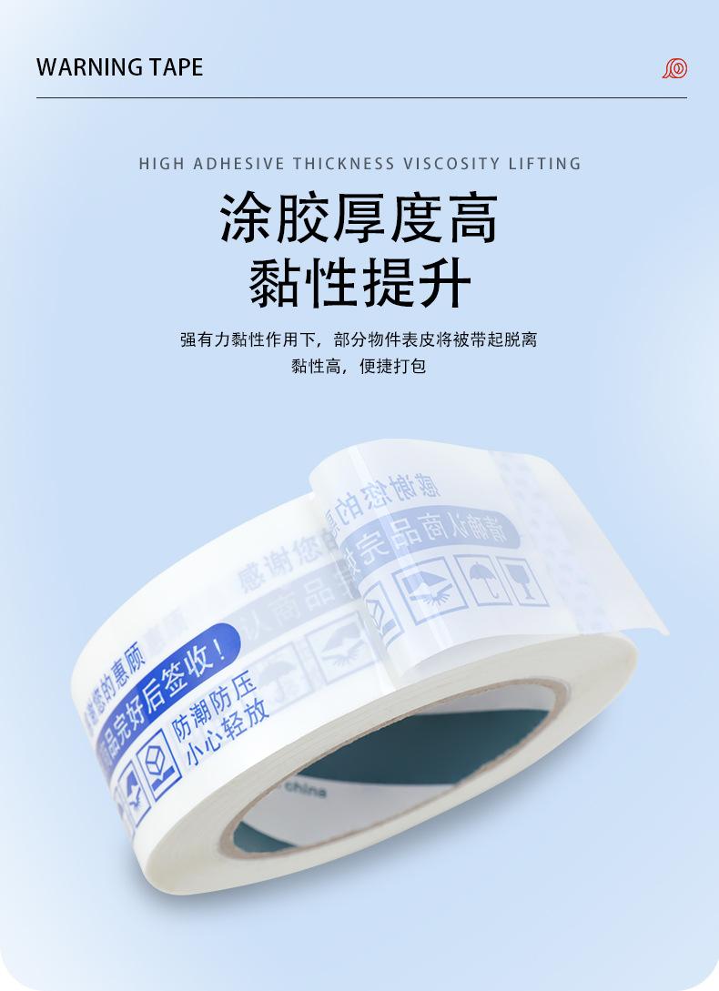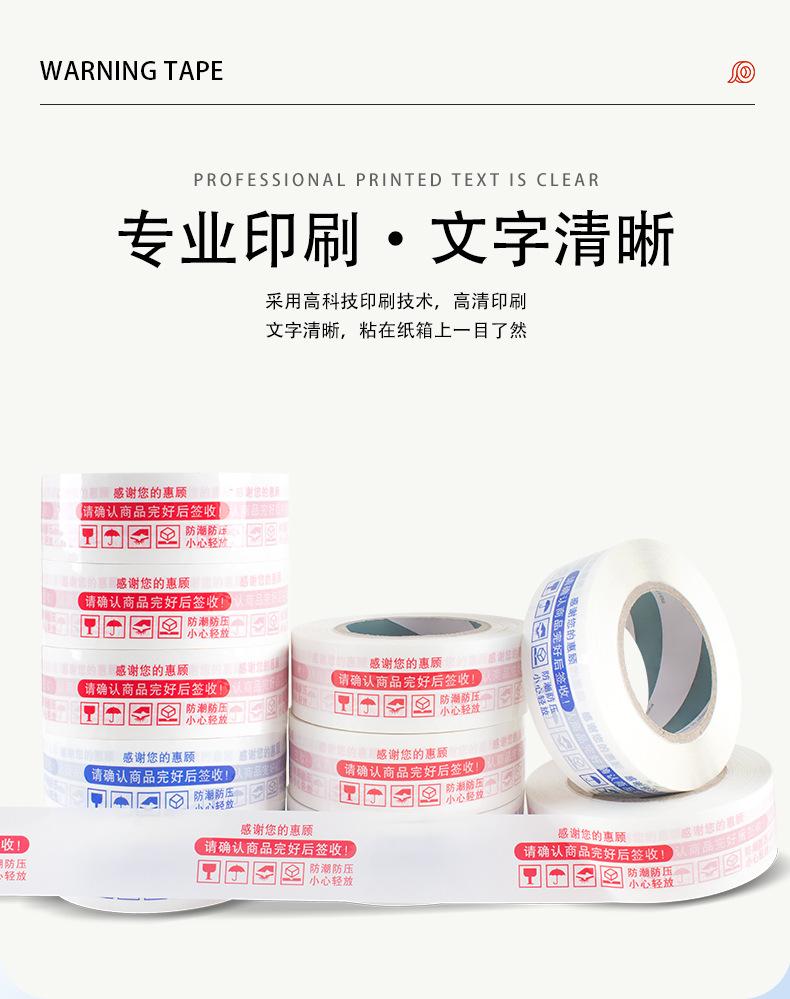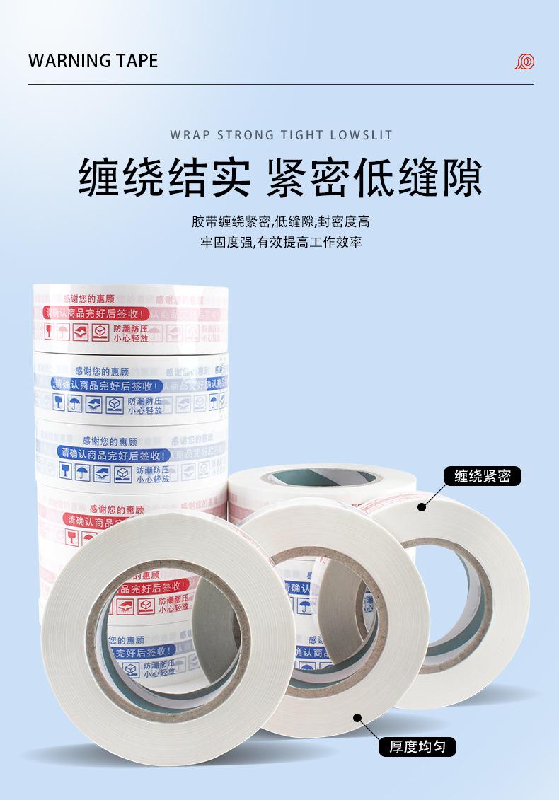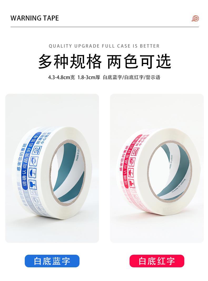 Advertencia de adhesivo fuerte cinta de embalaje para comercio electrónico Impresión cinta logística mayoreo Fondo blanco palabra roja palabra azul cinta de advertencia