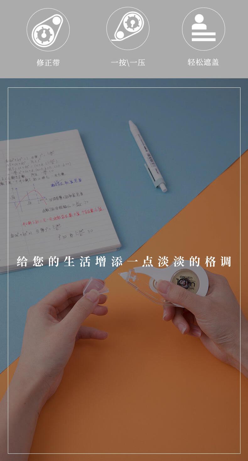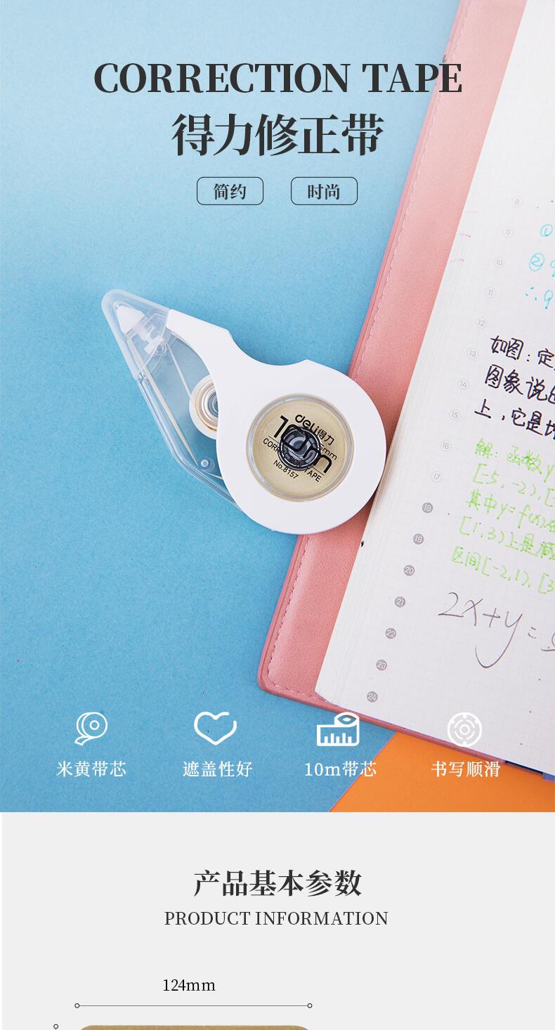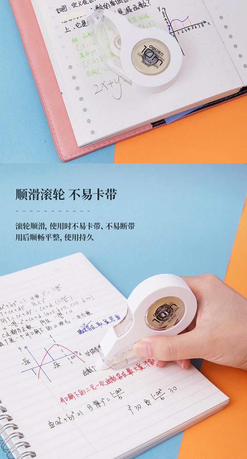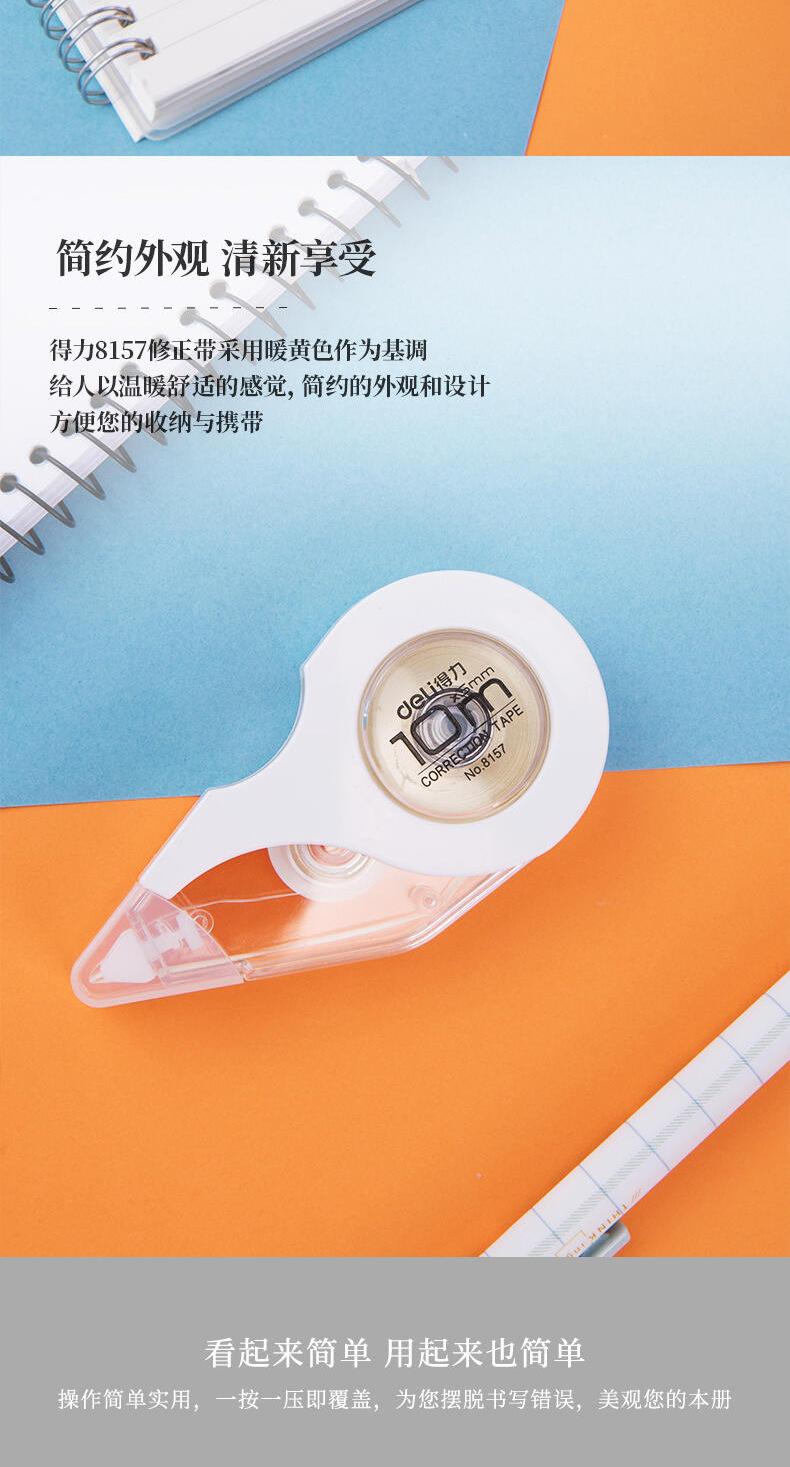 Cinta correctora beige Deli 8157, de gran capacidad y con núcleo para estudiantes.