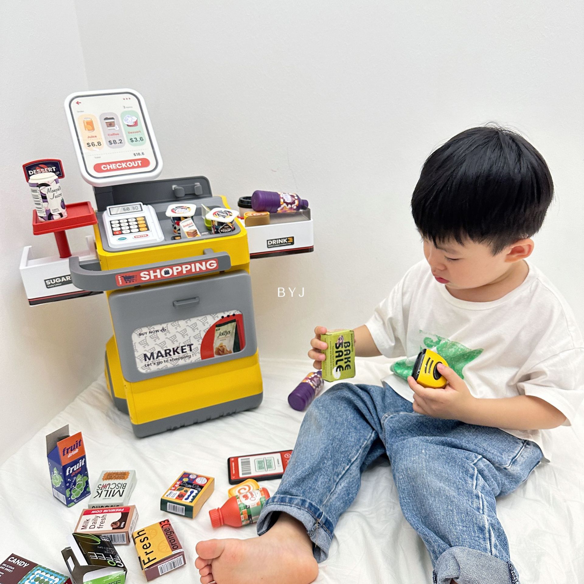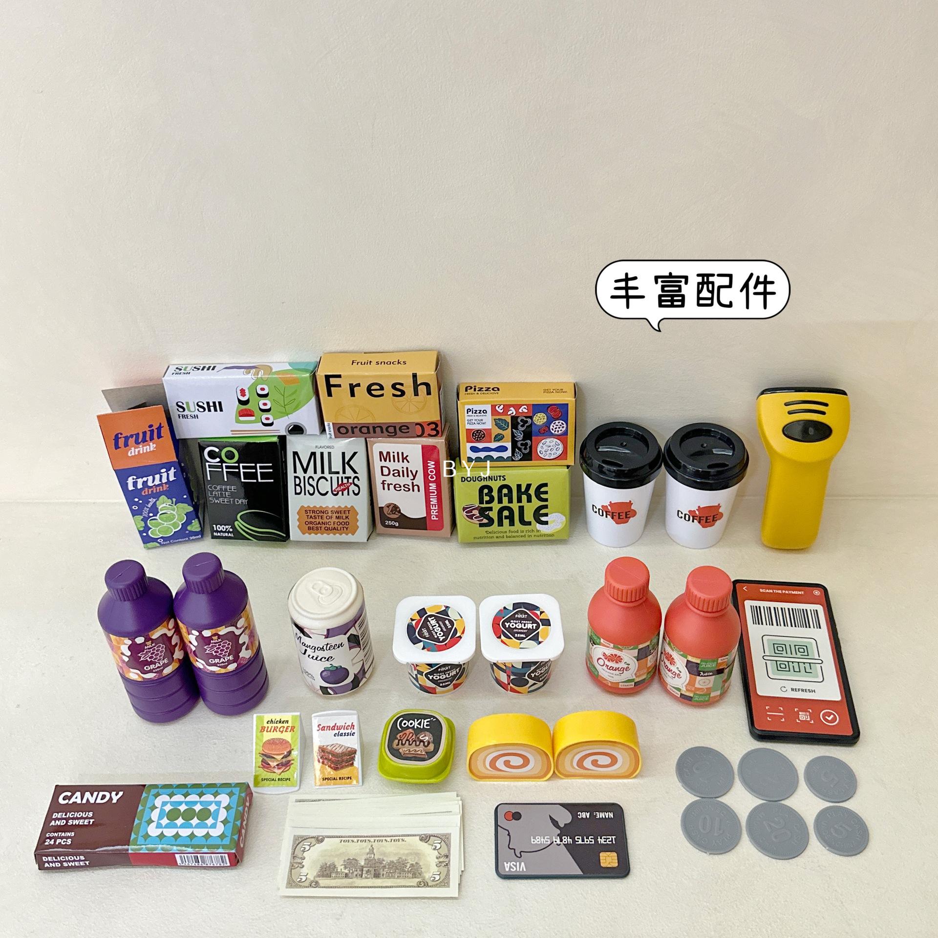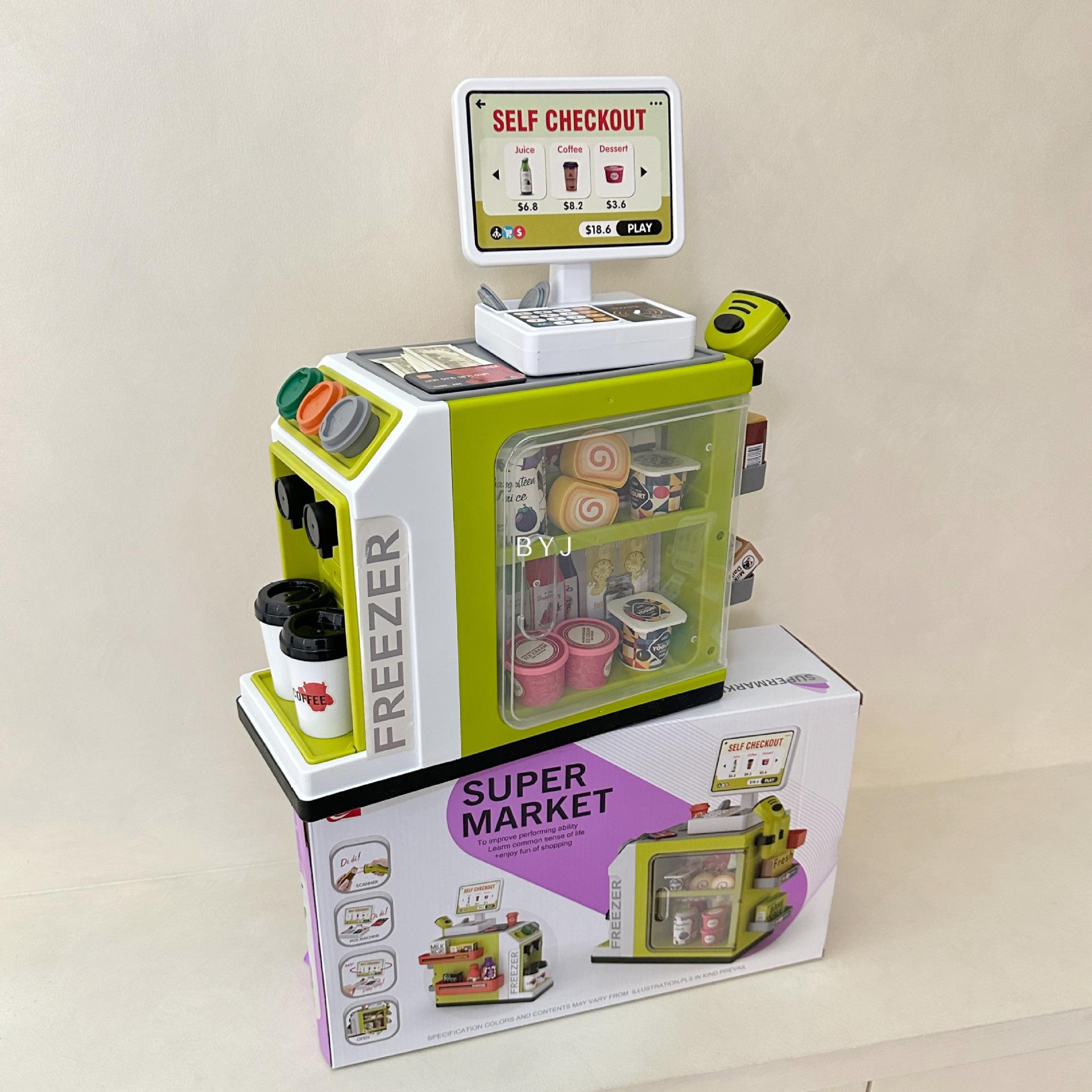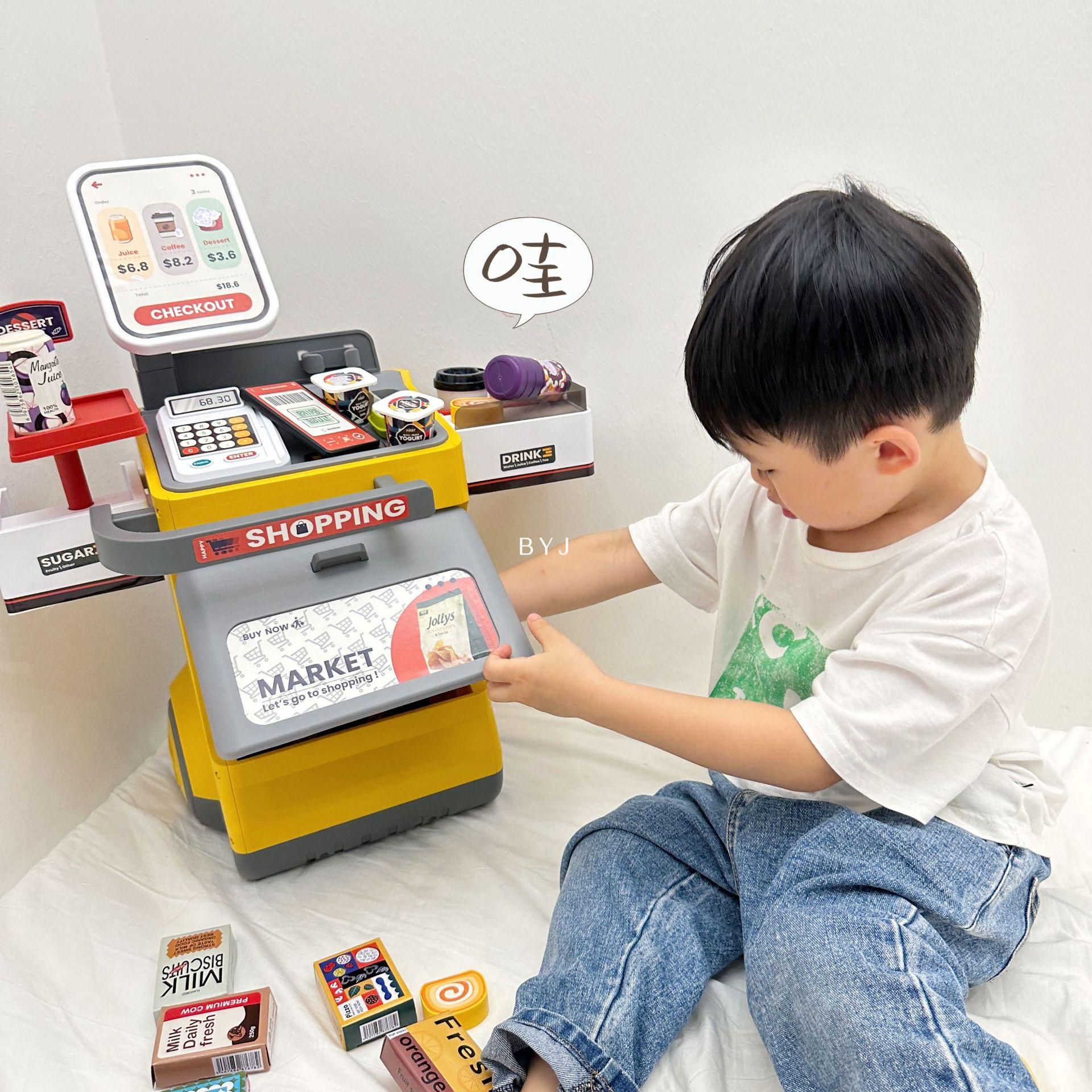 Set de mostrador de ventas de supermercado de simulación para niños transfronterizo, escáner de tarjetas de crédito, caja registradora, carrito de compras, casa de juegos, juguetes de supermercado