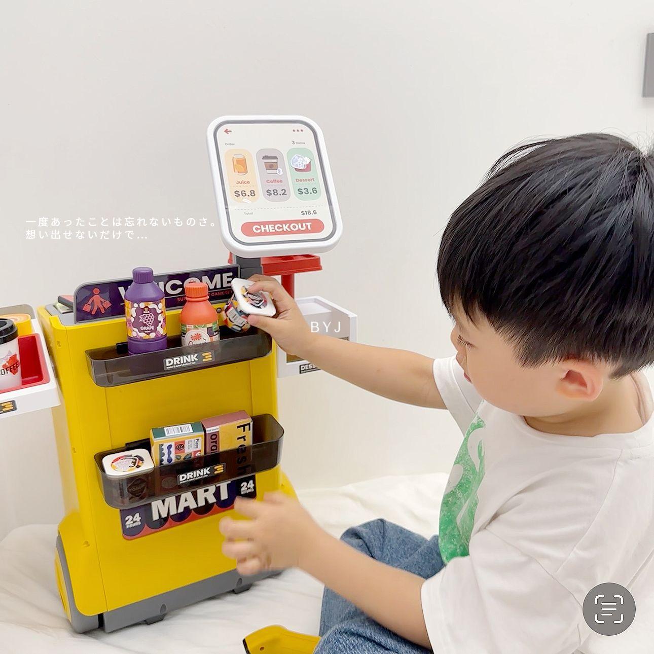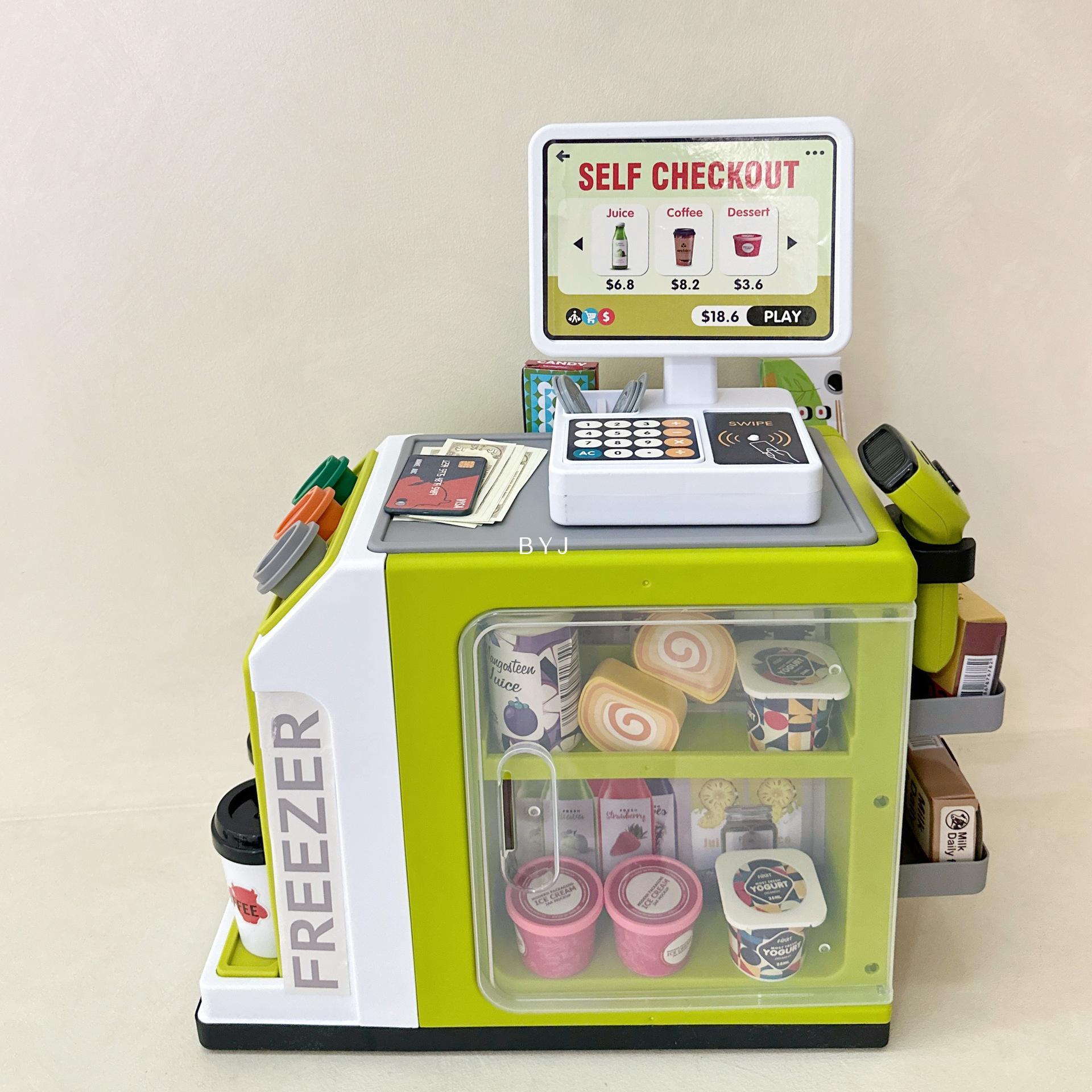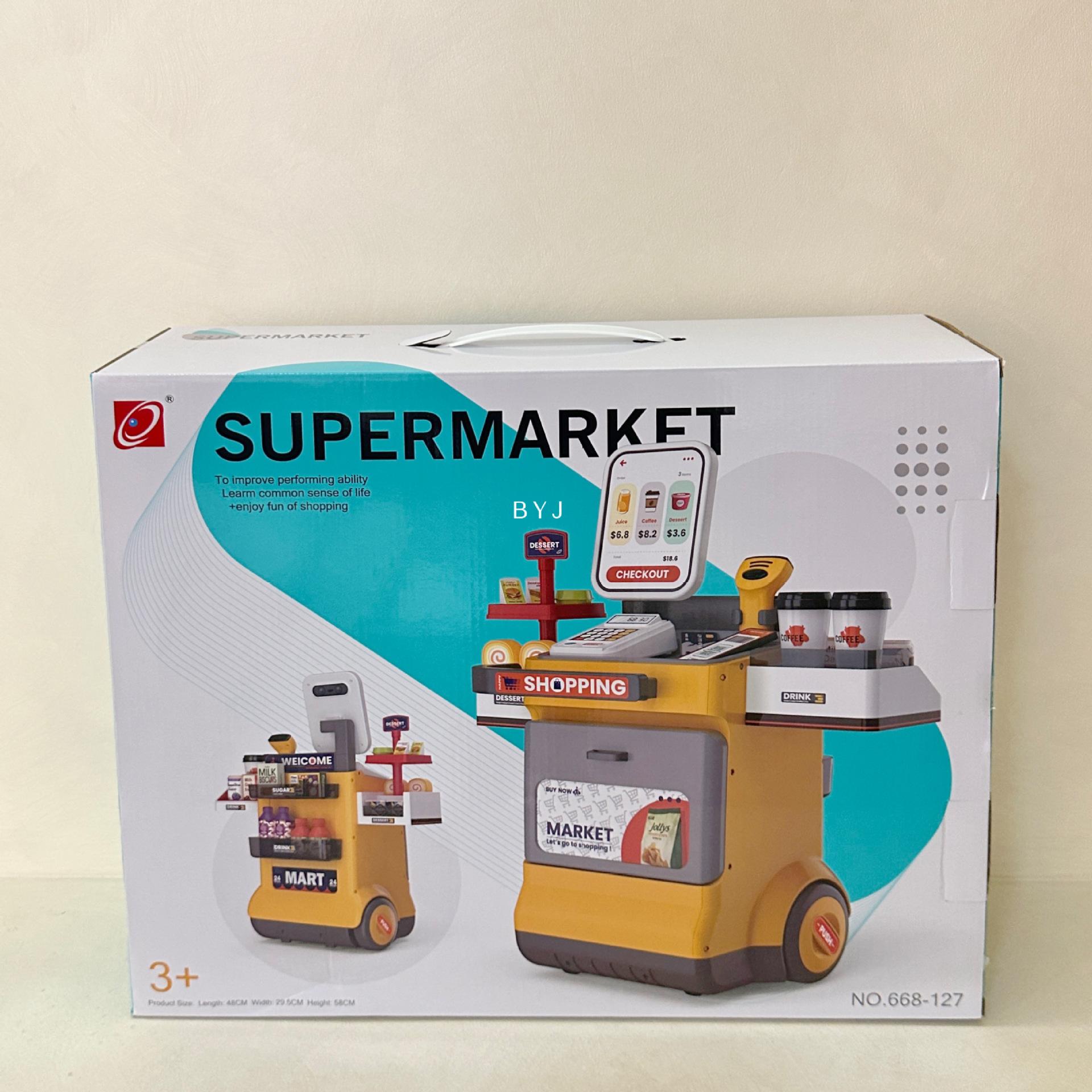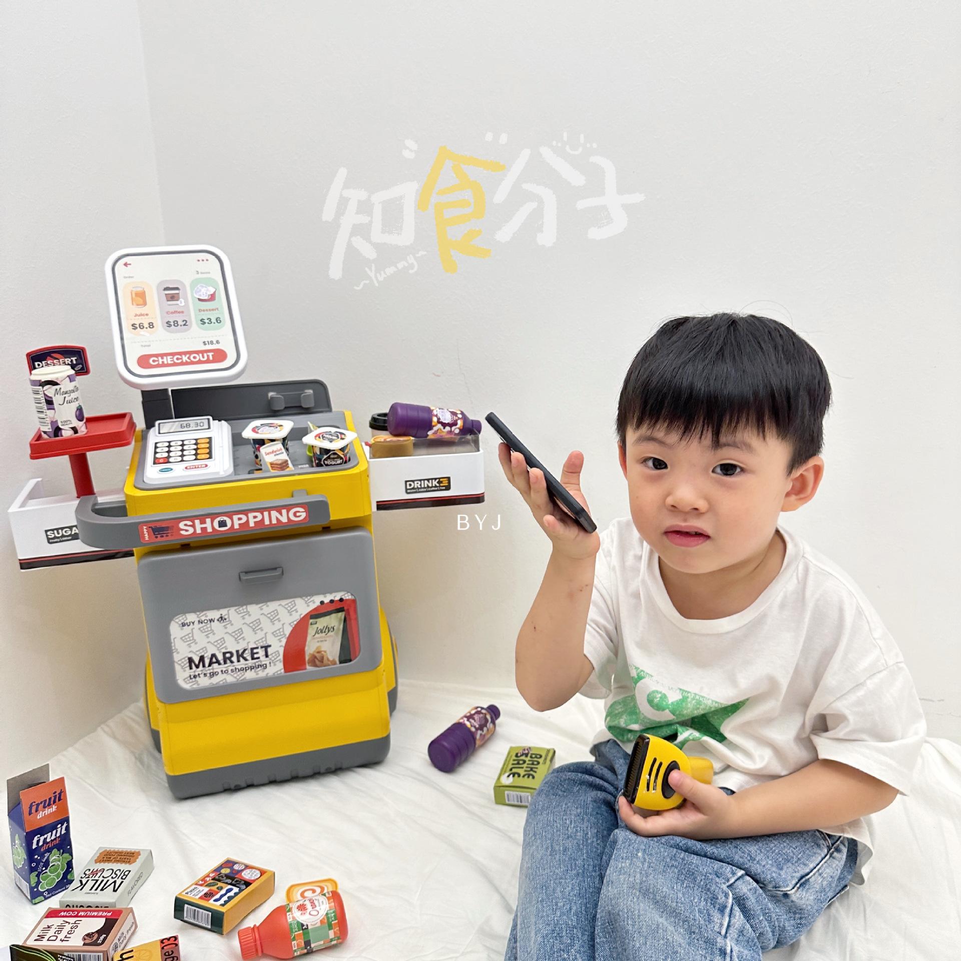 Set de mostrador de ventas de supermercado de simulación para niños transfronterizo, escáner de tarjetas de crédito, caja registradora, carrito de compras, casa de juegos, juguetes de supermercado