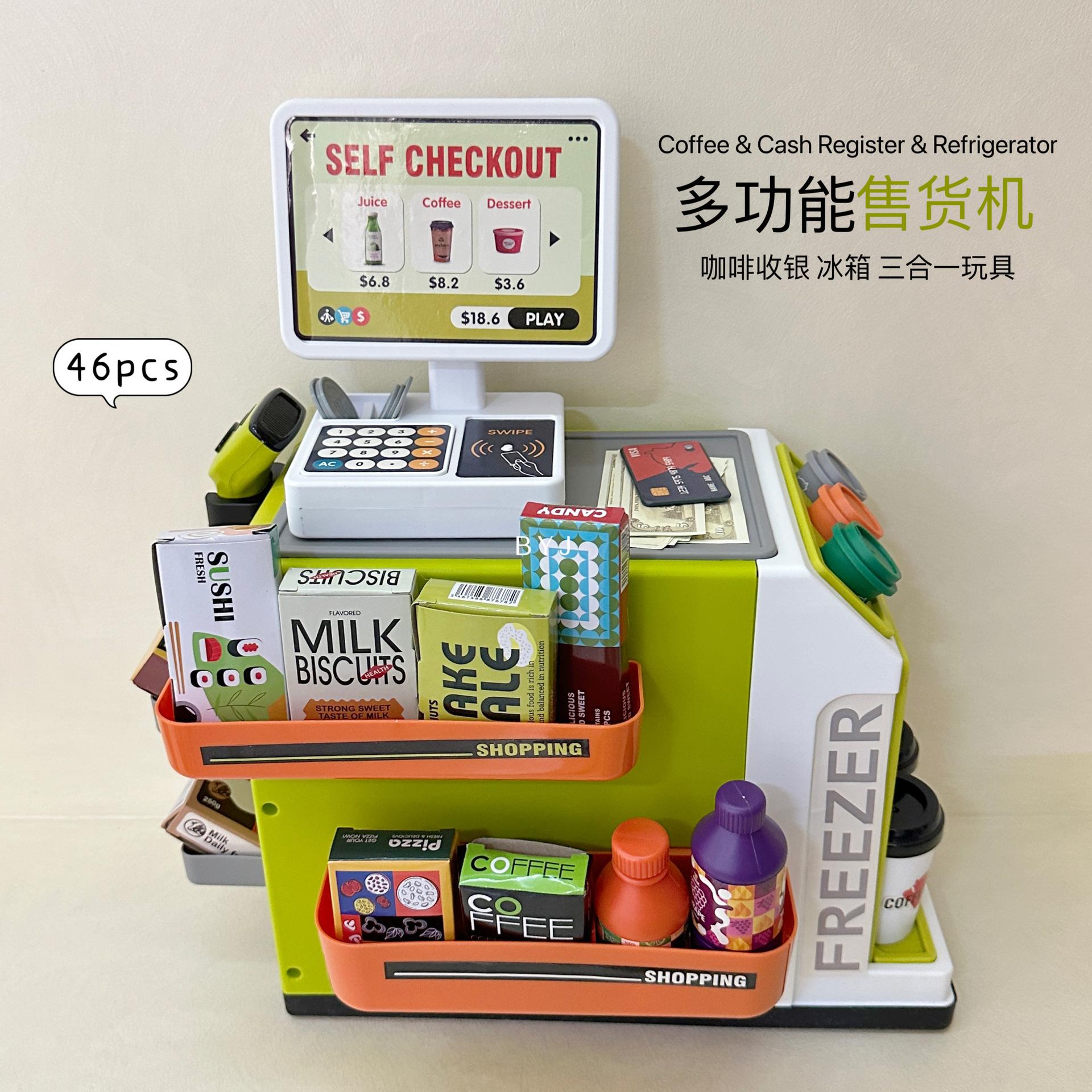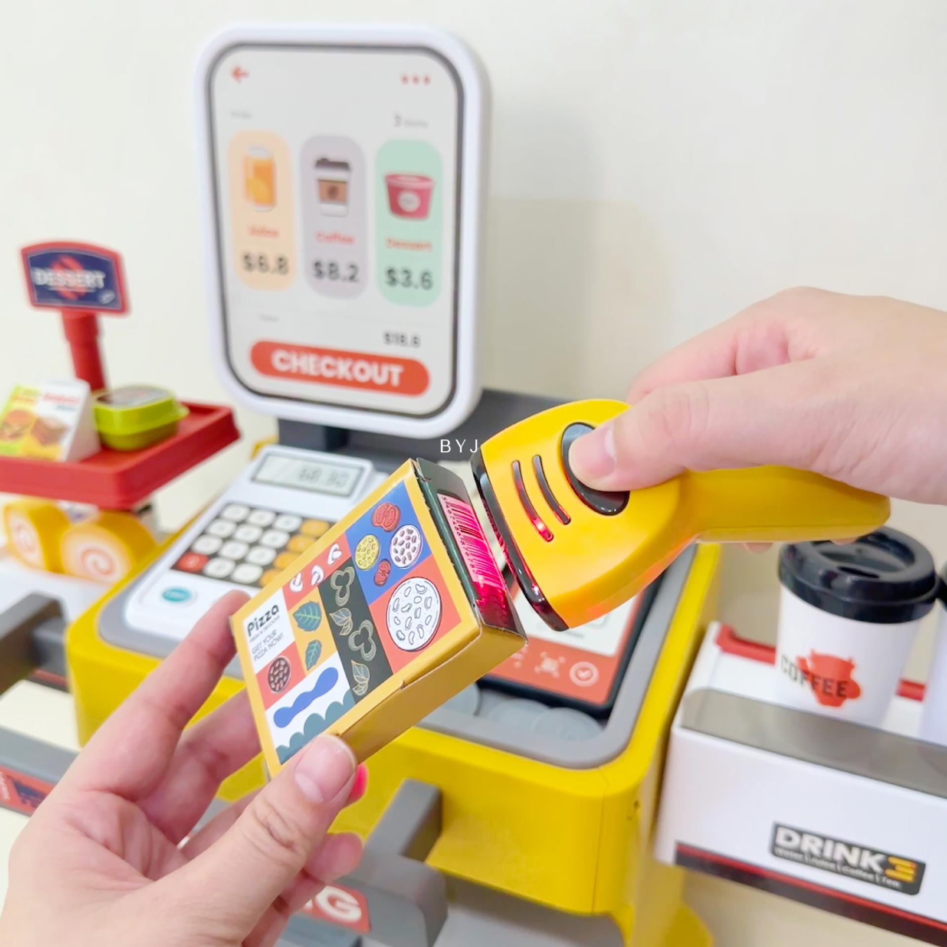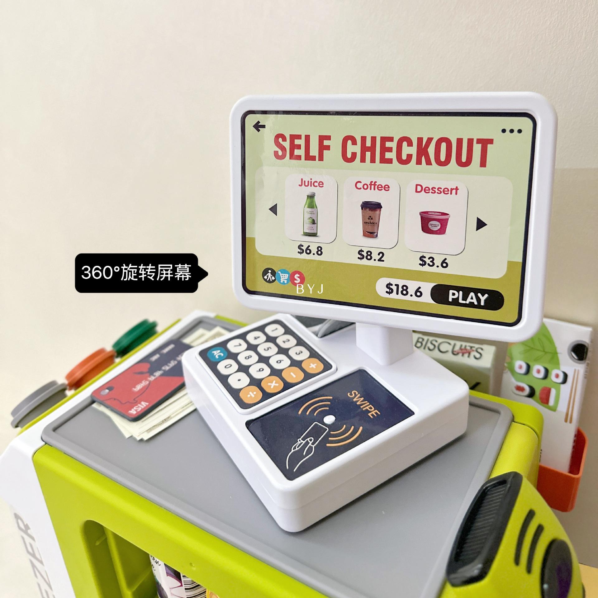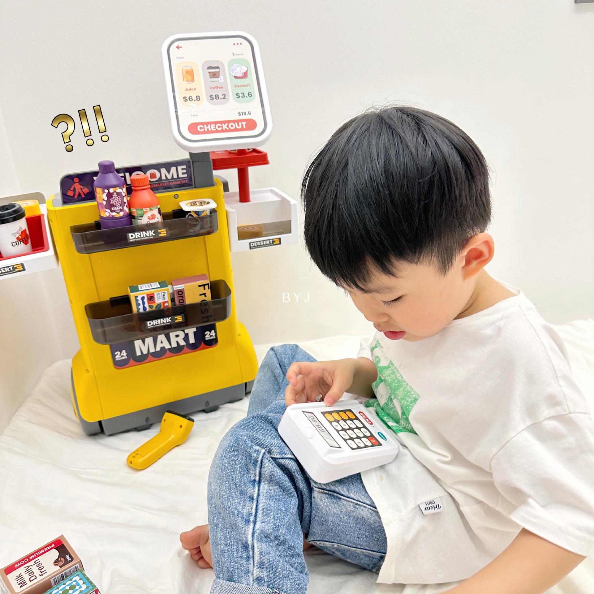 Set de mostrador de ventas de supermercado de simulación para niños transfronterizo, escáner de tarjetas de crédito, caja registradora, carrito de compras, casa de juegos, juguetes de supermercado