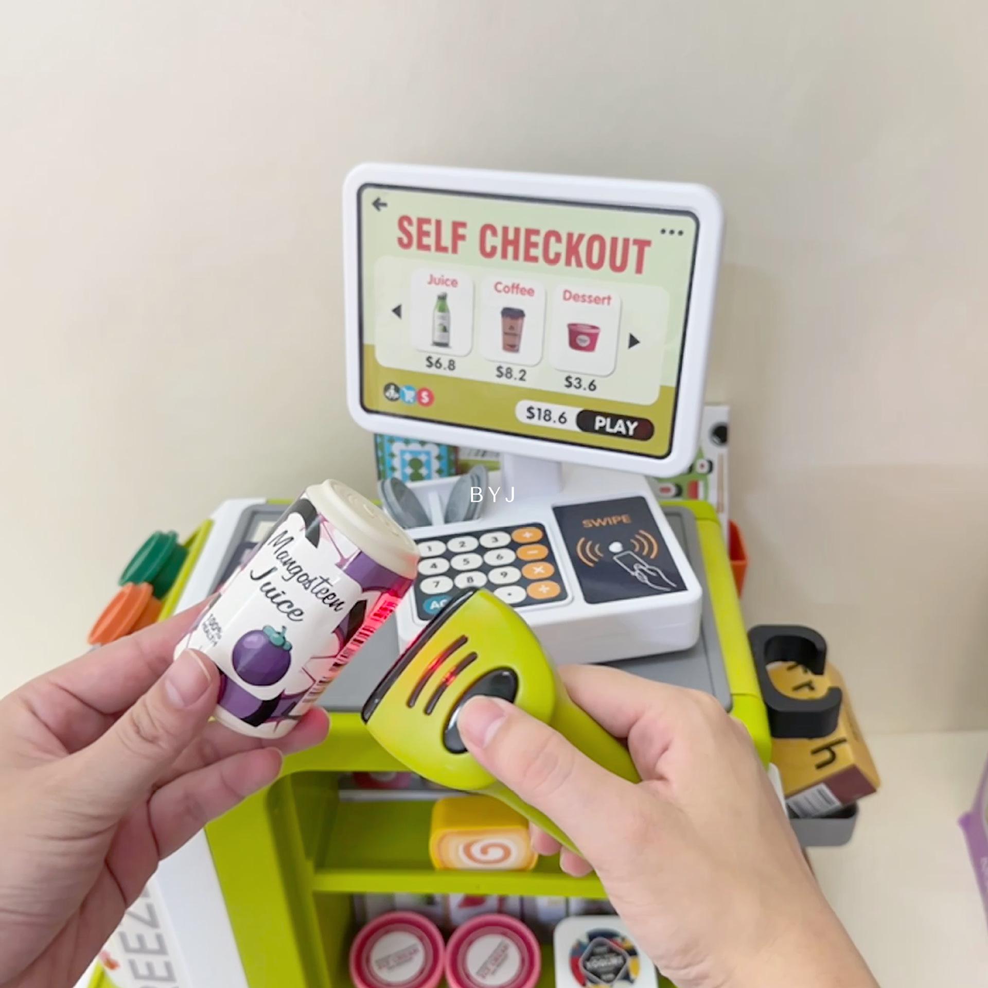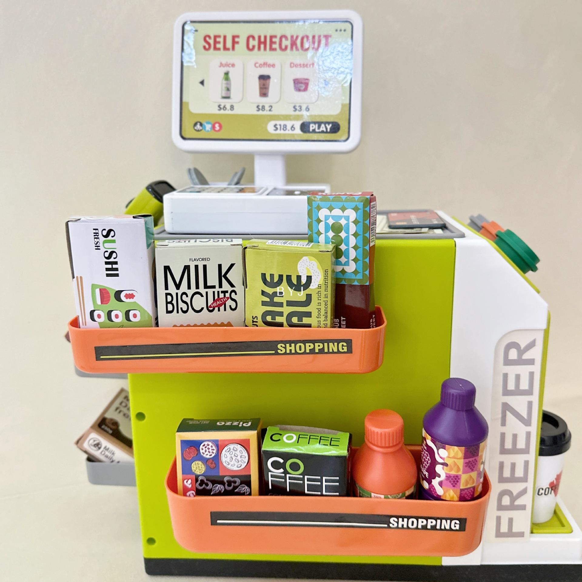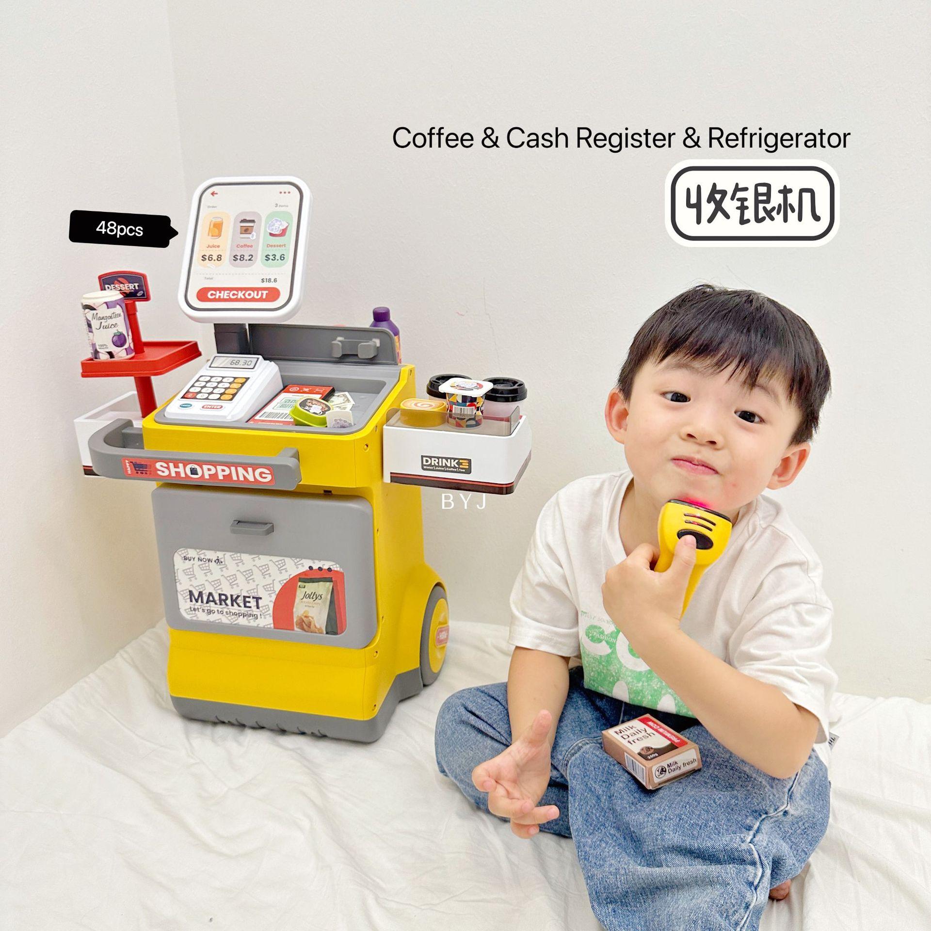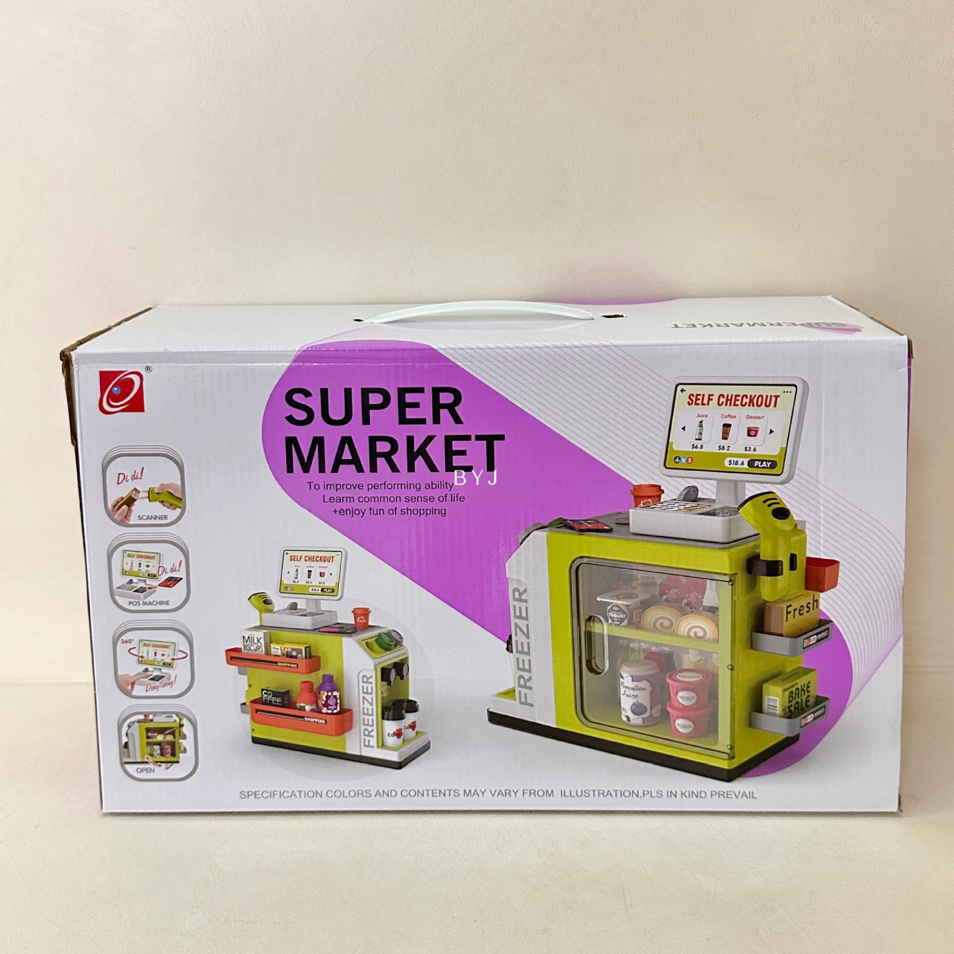 Set de mostrador de ventas de supermercado de simulación para niños transfronterizo, escáner de tarjetas de crédito, caja registradora, carrito de compras, casa de juegos, juguetes de supermercado