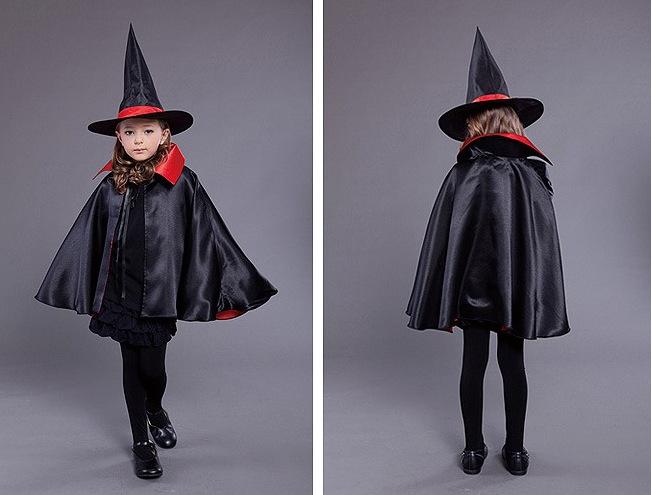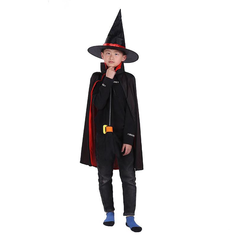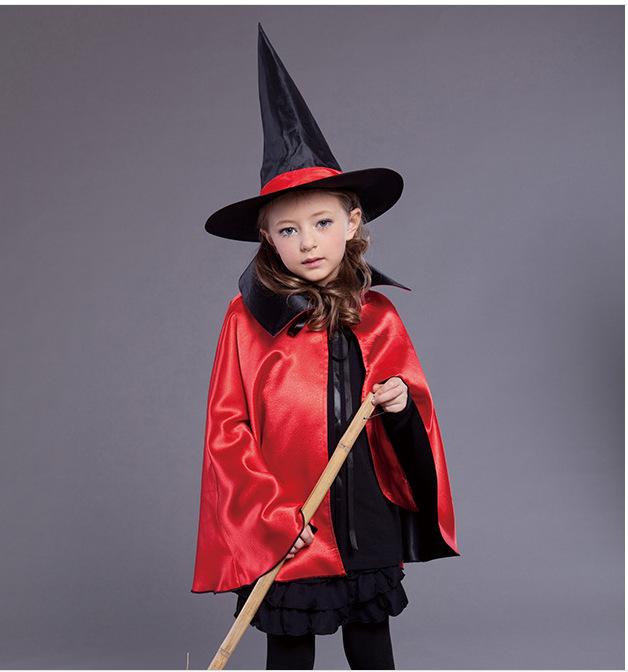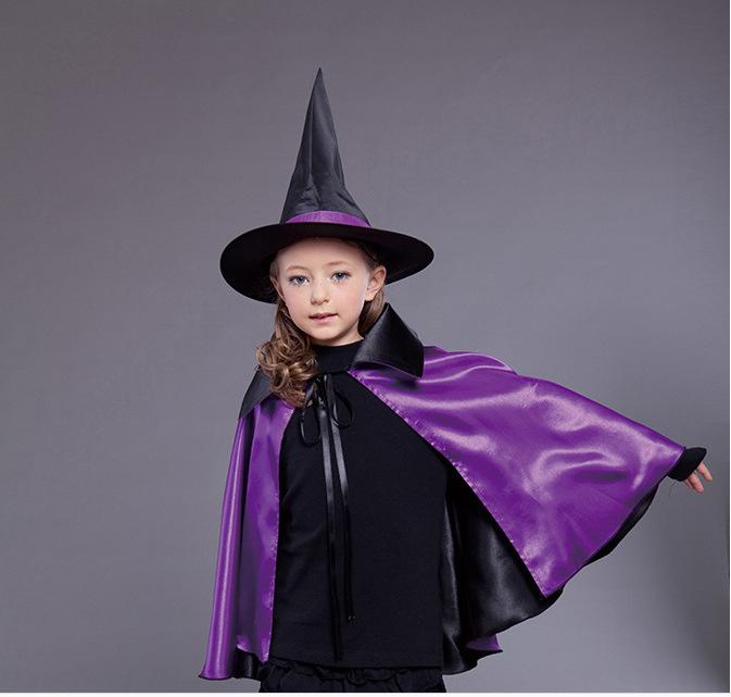 Nombre del producto: Capa de satén de doble capa de Halloween más sombrero de satén