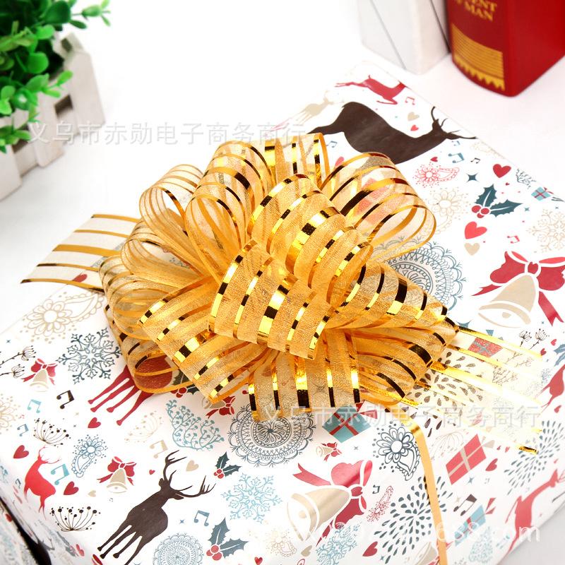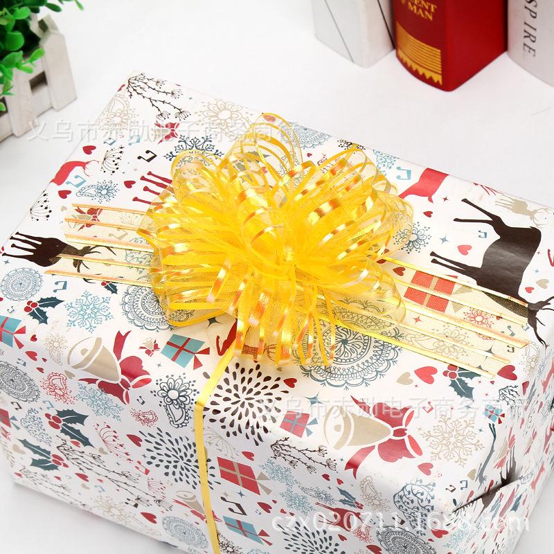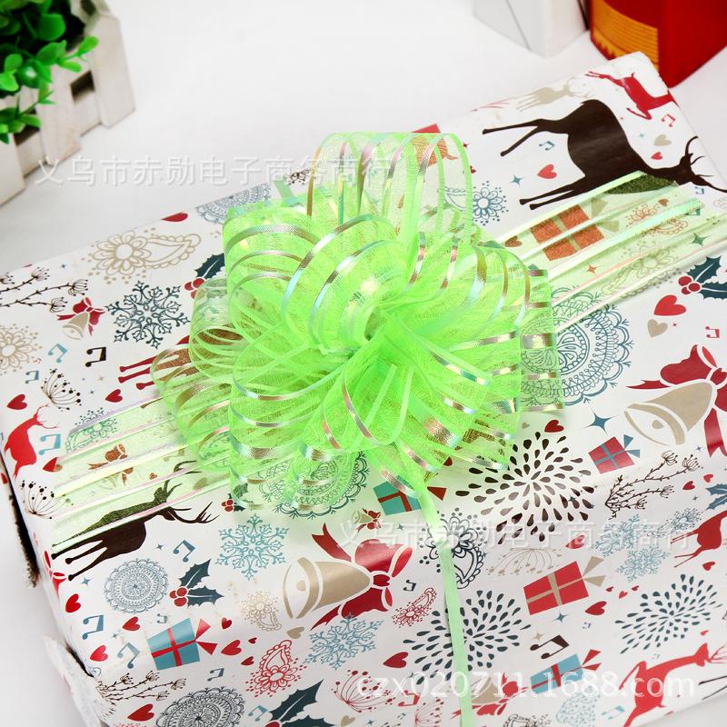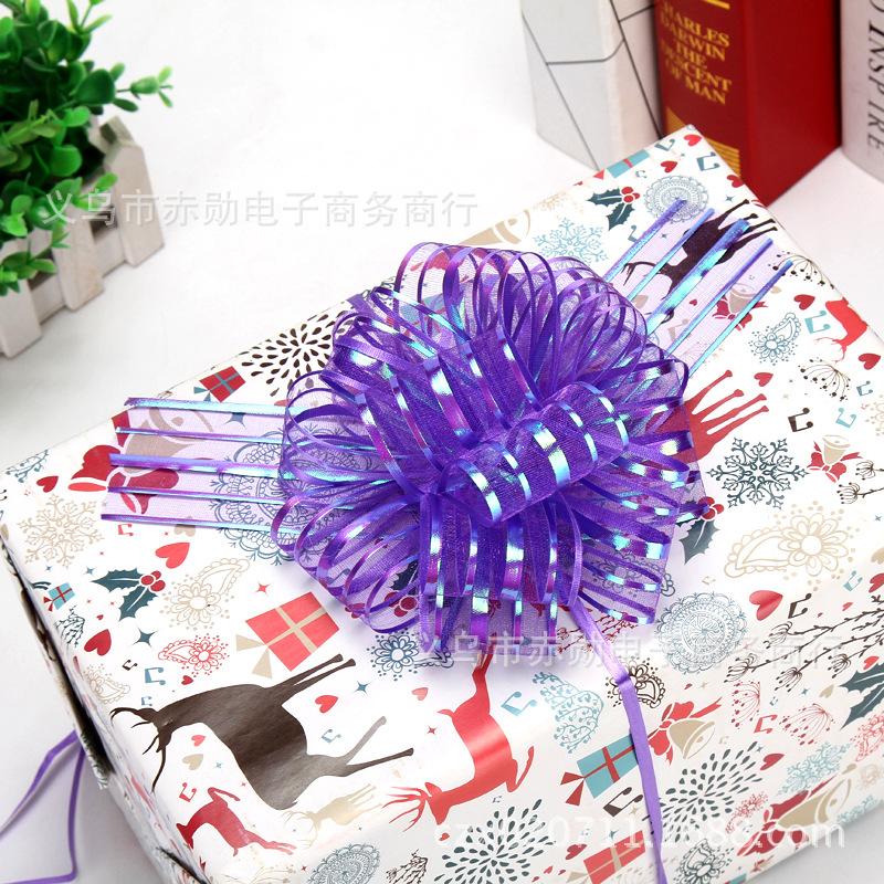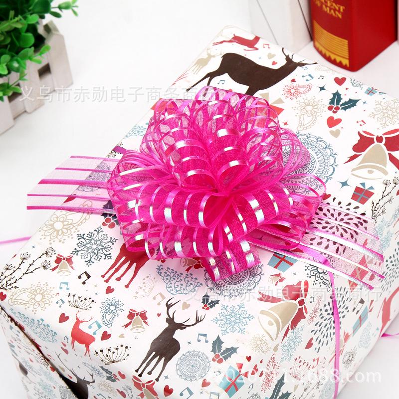 Flor grande de bola de estambre de nieve de 5 líneas, decoración para coche de boda, estambre para envolver regalos de Navidad, flor esférica de 8 secciones, cinta al por mayor