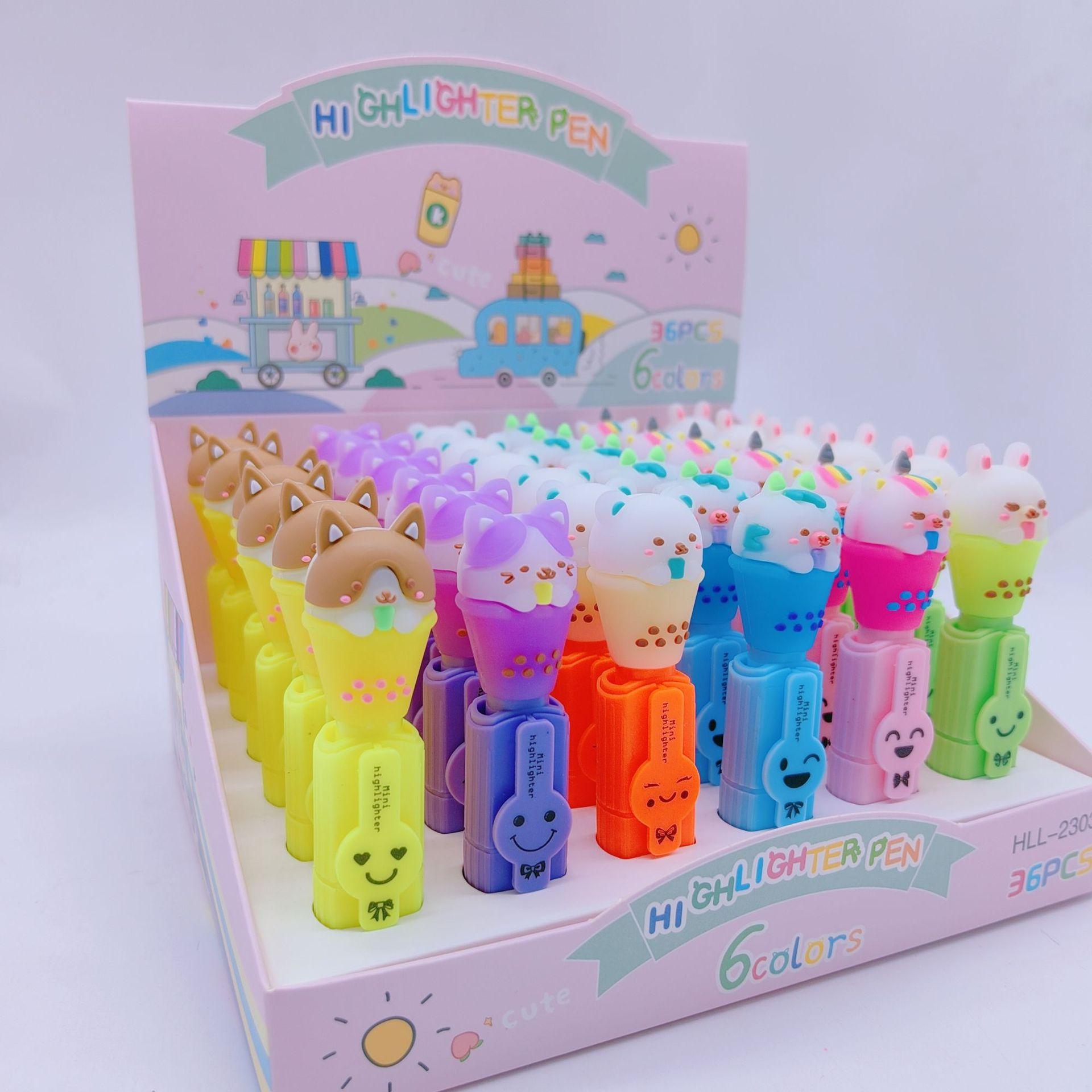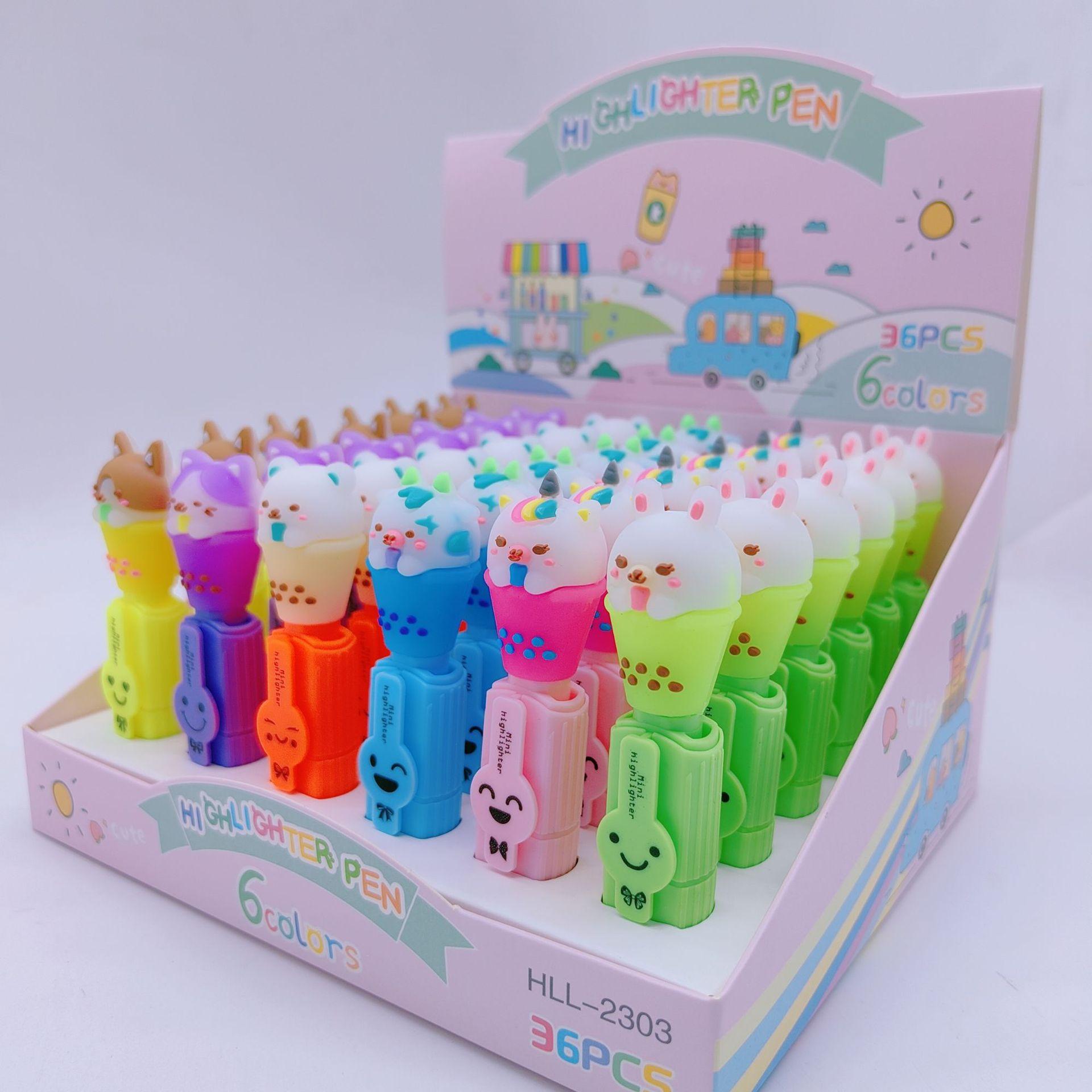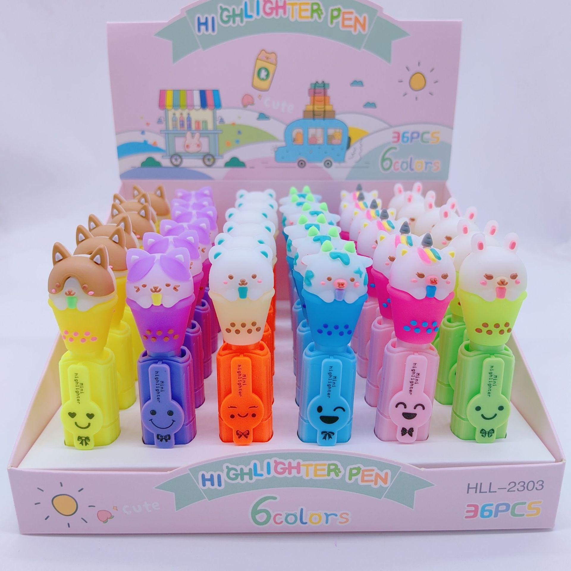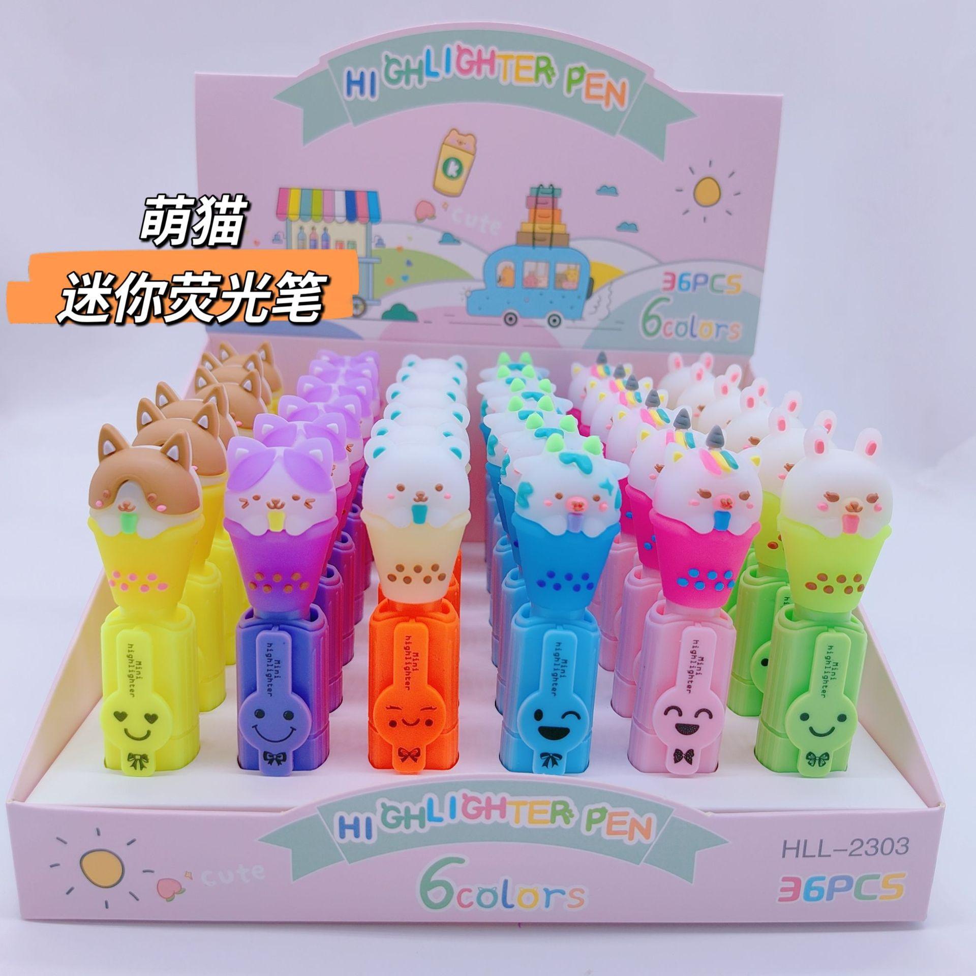 Lindo resaltador de gato para estudiantes, lindo resaltador de dibujos animados, mini marcador portátil para modelado de expresiones faciales, marcador clave para dibujo de cuentas a mano