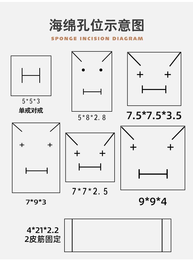 7*9*3 (including sponge), 9*9*3 (including sponge), 5*5*3 (including sponge), 7.5*7.5*3.5 (including sponge), ...