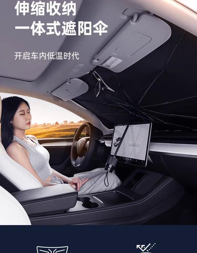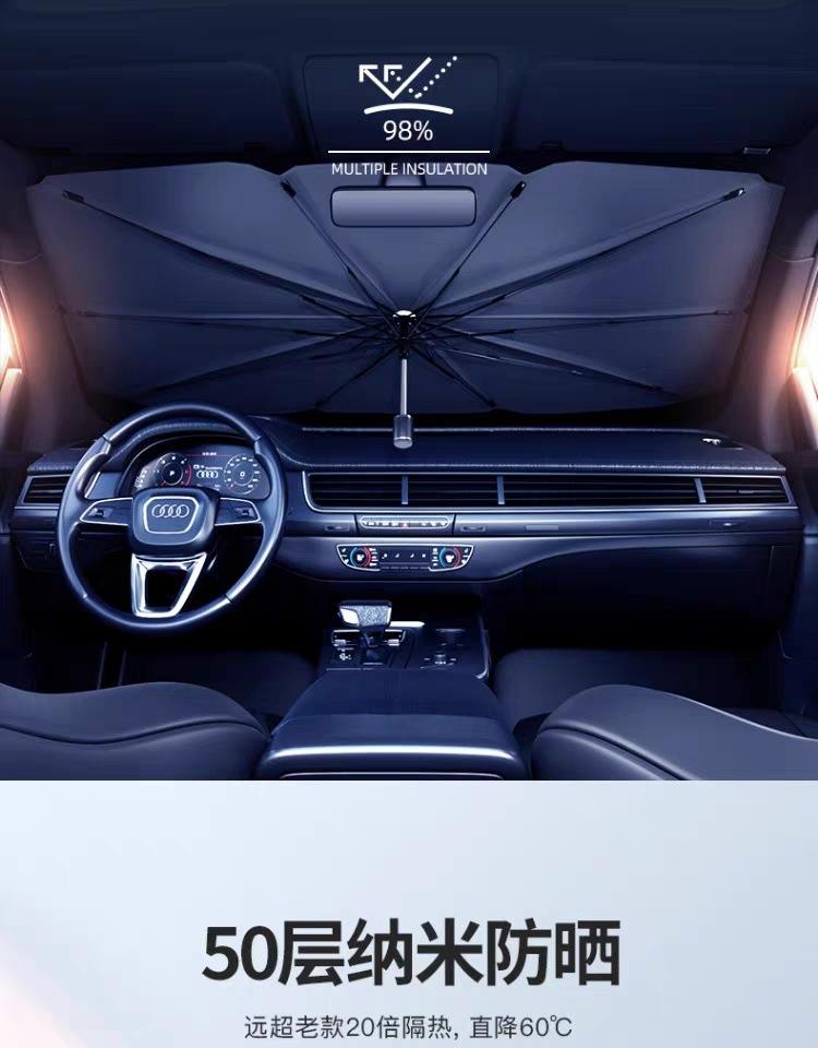 Parasol para Coche, Protección Solar para Ventana, Aislamiento Térmico, Cortina Parasol, Parabrisas Delantero, Parasol Montado en Coche, Paraguas de Almacenamiento, Oscurecimiento Total