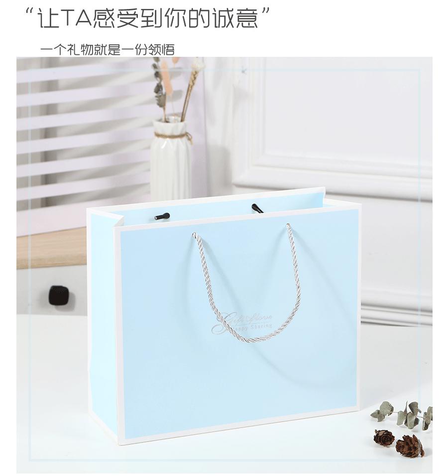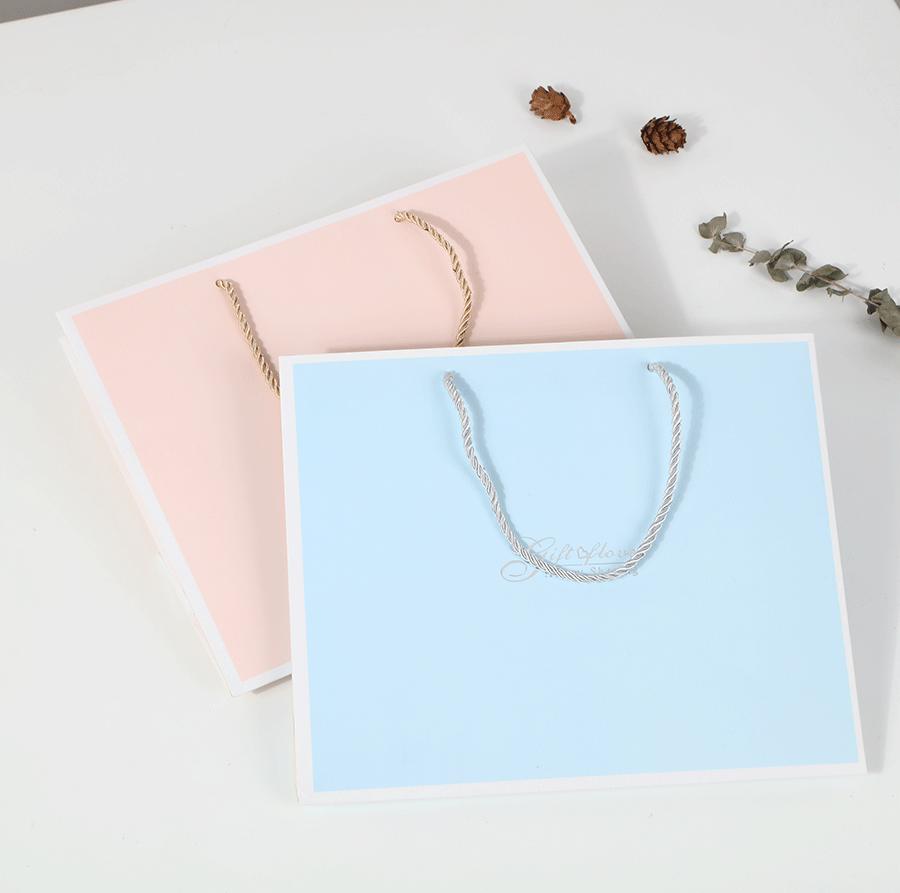 Cartón blanco: El cartón blanco es firme y grueso, con alta rigidez, resistencia al desgarro, suavidad y una superficie plana. El grosor más común es de 210 a 300 gramos, y el más común es el de 230 gramos. Las bolsas de papel impresas en cartón blanco tienen colores vibrantes y una excelente textura, lo que las convierte en la mejor opción para personalizar.