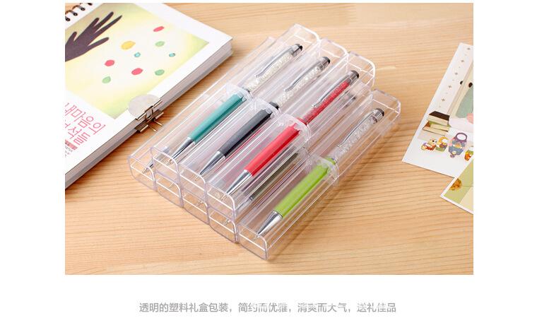 Suministro directo de fábrica mini caja de cristal transparente para bolígrafos bolsa de papelería de plástico PP caja de regalo para bolígrafos con pedrería venta al por mayor al contado