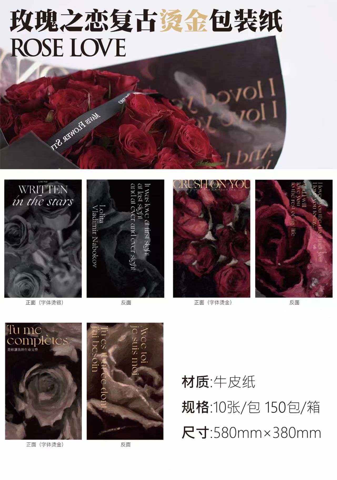 Papel kraft vintage Rose Love, serie de papel para envolver flores color bronce, papel para envolver ramos de San Valentín, fácil de plastificar