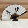 Abanico de Barra de 10 pulgadas Abanico Disco Estilo Chino Estilo Antiguo Tela de Seda Inscripción Abanico Plegable Hombres y Mujeres Tendencia Nacional Abanico Plegable al por Mayor
