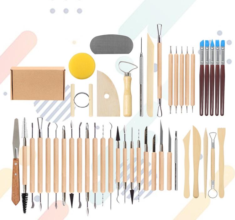 Nuevo Set Transfronterizo de 45 Piezas de Venta Caliente de Herramientas de Arcilla Cuchillo para Tallar Set Multifuncional Empaque en Caja Set DIY Hecho a Mano