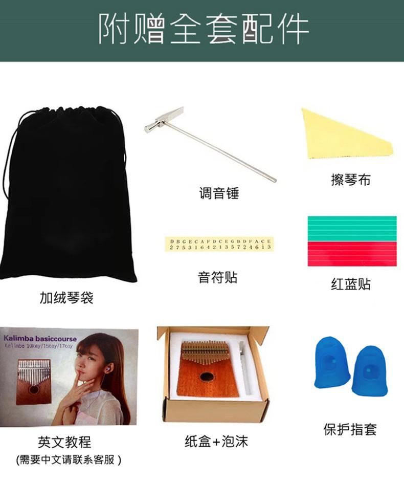 kalimba de caoba de 17 notas (embalaje de bolsa de burbujas de caja pequeña)
