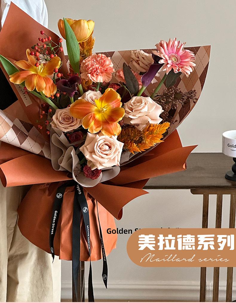Papel de regalo de flores de la serie Maillard de otoño e invierno con sombra de Flower Companion, hecho a mano, material de bricolaje, papel de regalo de flores, papel de arte