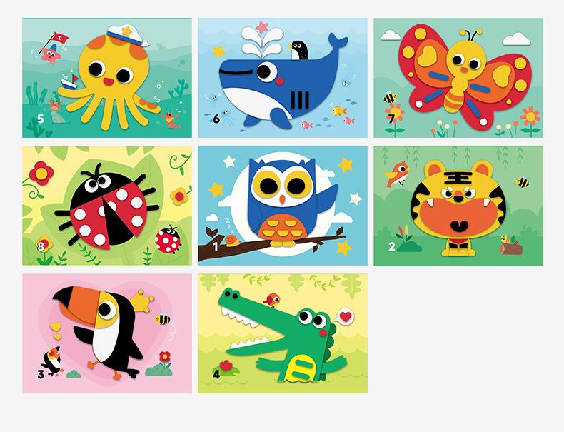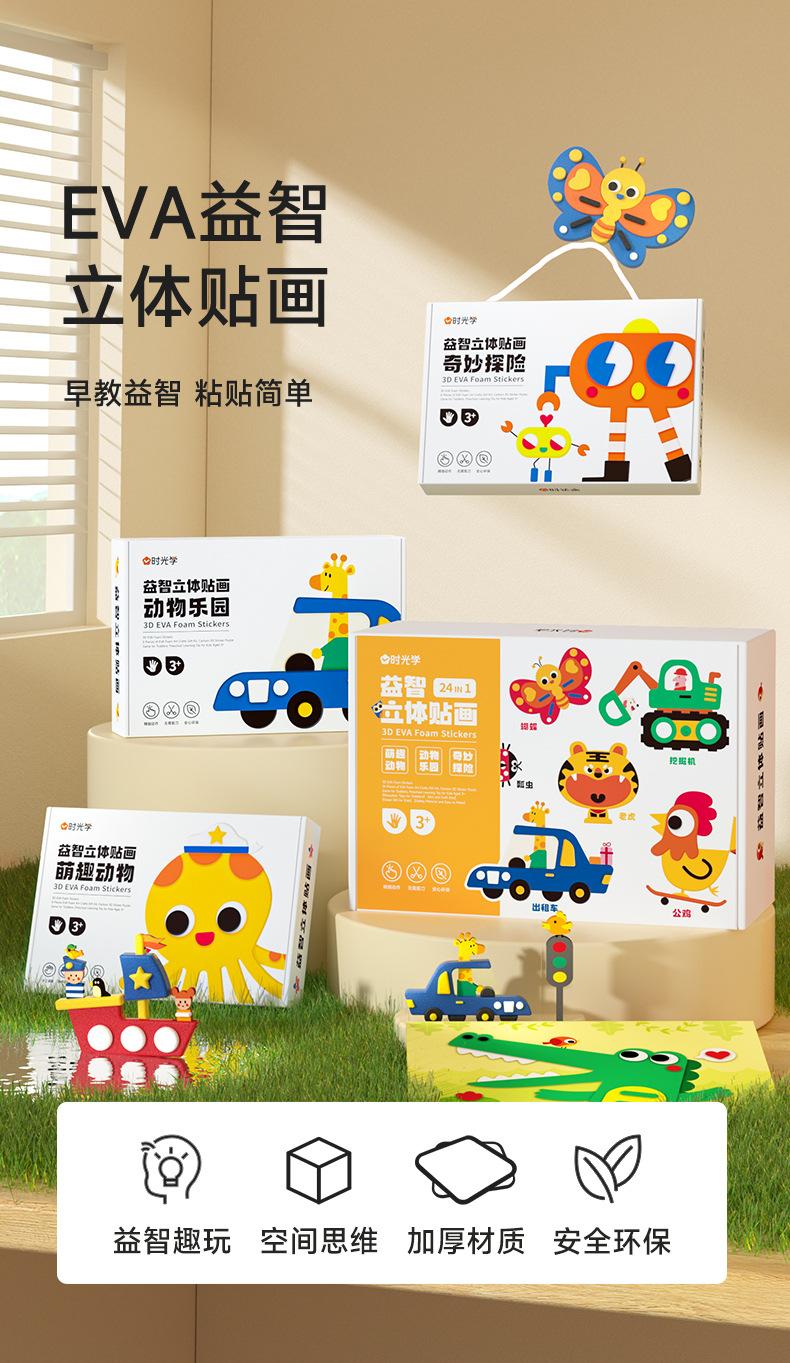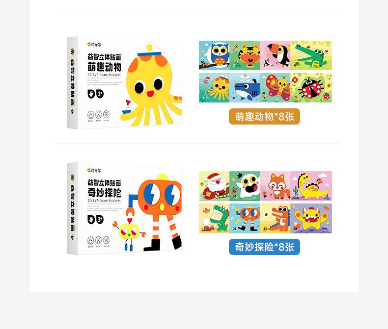 Rompecabezas de aprendizaje del tiempo, pegatinas tridimensionales, los 3 libros para niños, hechos a mano, bricolaje, educación de la primera infancia, pegatinas tridimensionales de la Ilustración