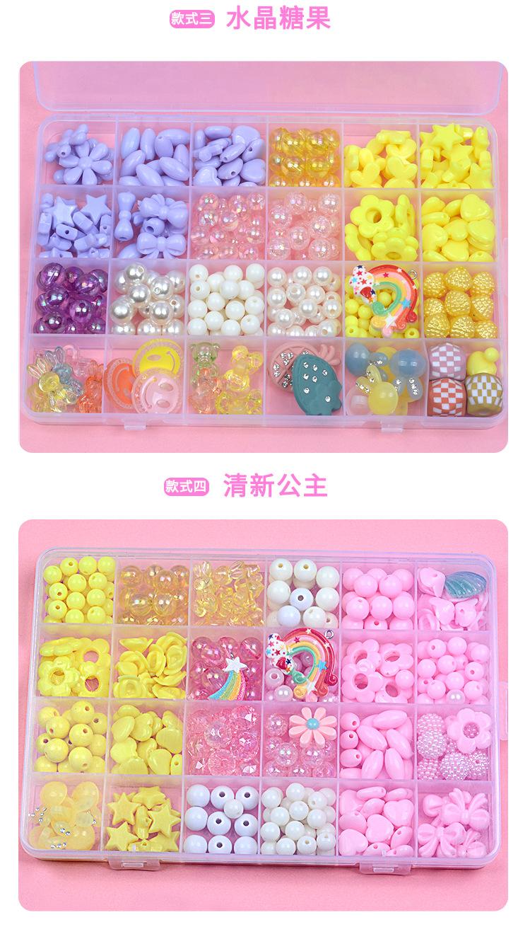 Nota: Las cuentas de 24 rejillas - Serie Hielo y Nieve, cuentas de 24 rejillas - Princesa Fresca, cuentas de 24 rejillas - Chica Deslumbrante, cuentas de 24 rejillas - Caramelo de Cristal estos cuatro estilos no vienen con colgantes, los colgantes en las imágenes son solo para fines fotográficos, si necesita agregar colgantes, ¡¡¡póngase en contacto con el servicio al cliente!!!