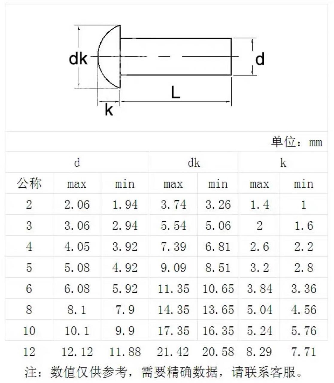 Remache de cabeza redonda de cobre M5, explosiones GB867, clavo de cobre sólido, tornillo de cobre, columna de varilla Haoyuan Tianhao