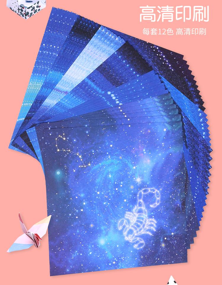 Papel de impresión a doble cara a color, papel cuadrado plegable, papel cortado, impresión de cielo estrellado, constelación, material de bricolaje hecho a mano para niños, papel, papel, grúa de papel