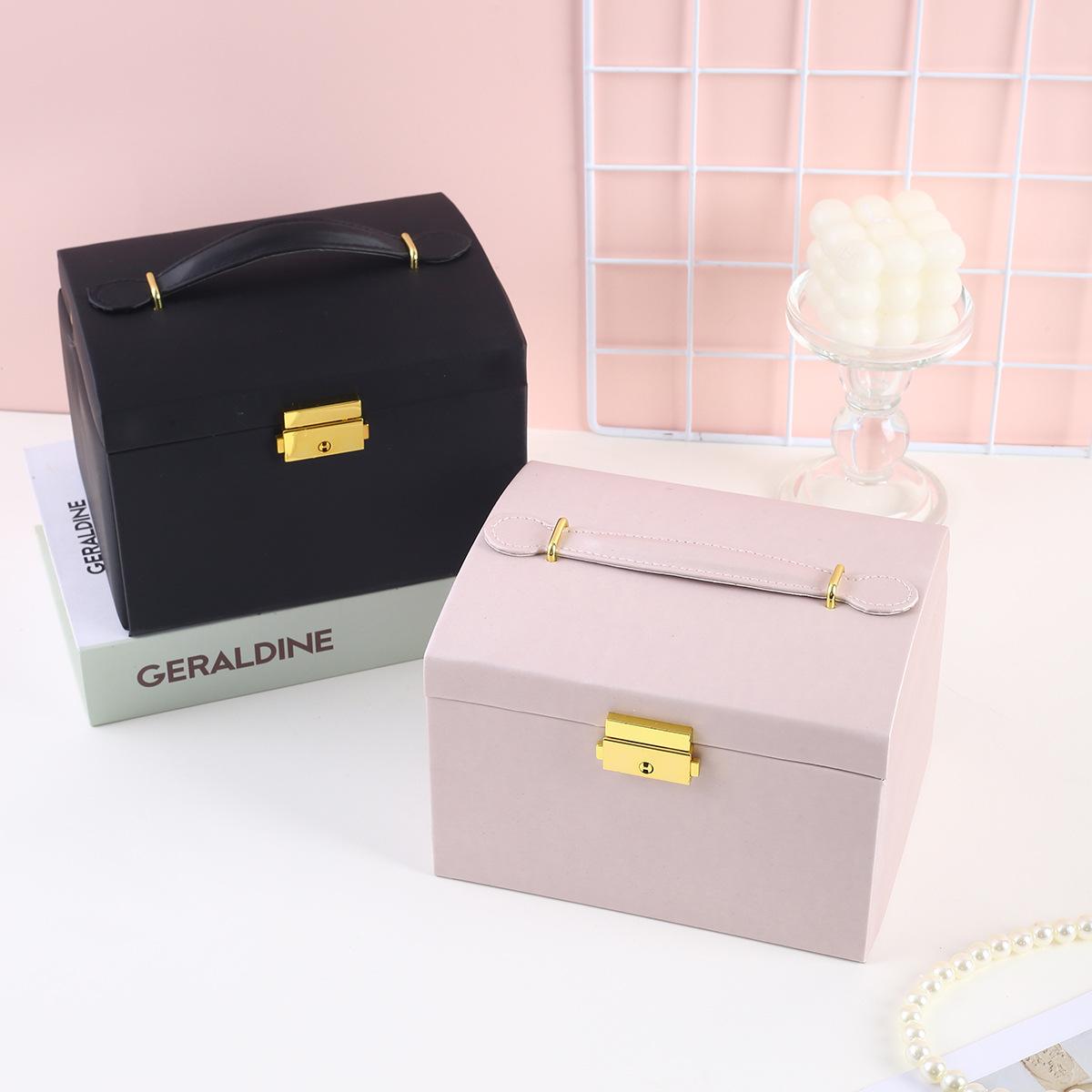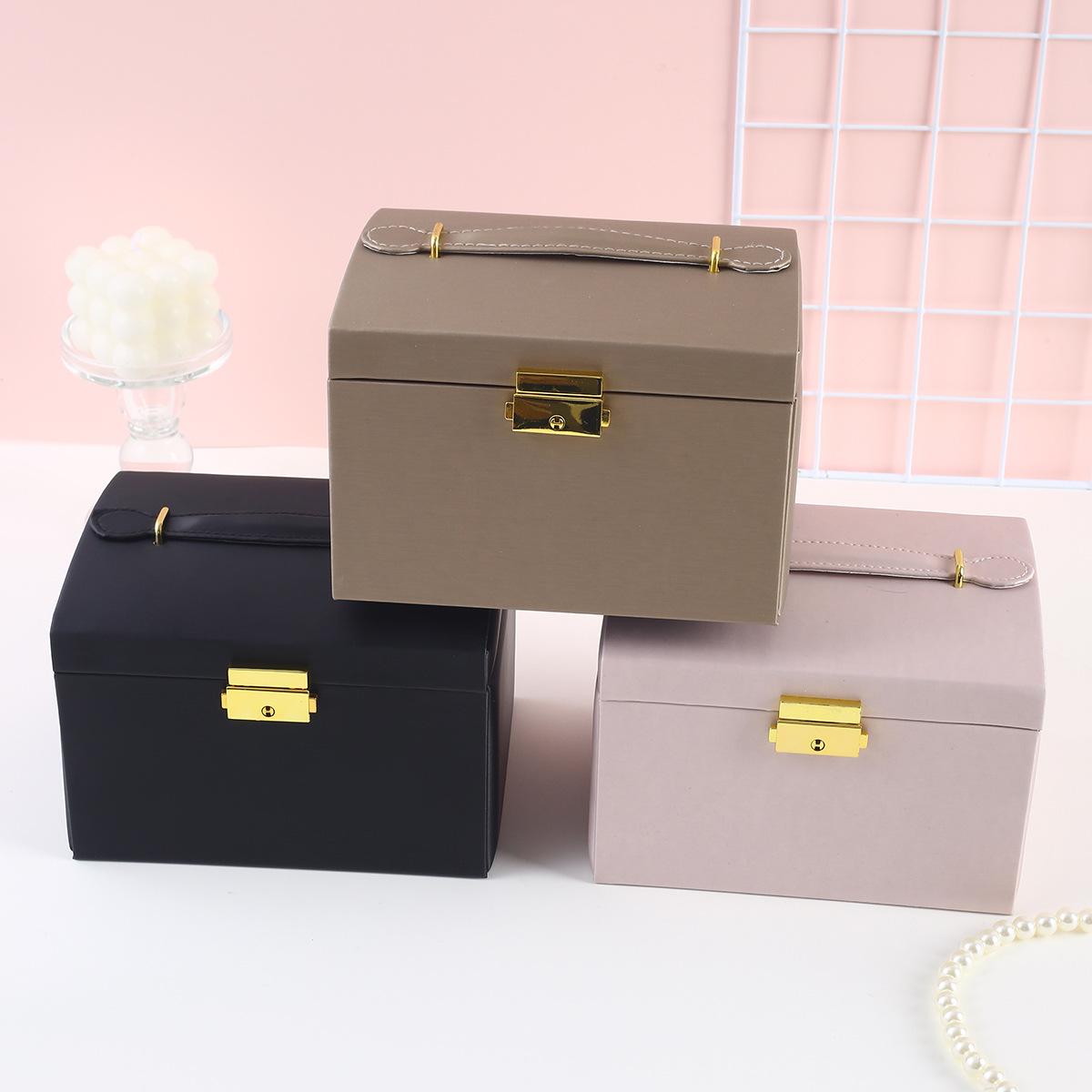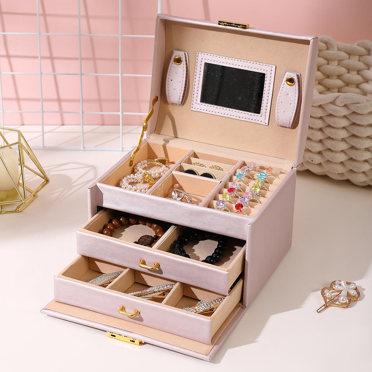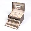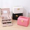 Caja de joyería de alta calidad para collar y aretes, caja de joyería portátil de tres capas con cerradura, caja de almacenamiento de joyas al por mayor