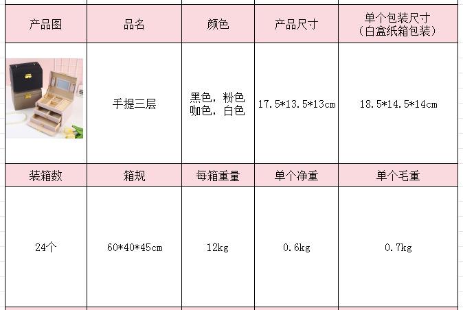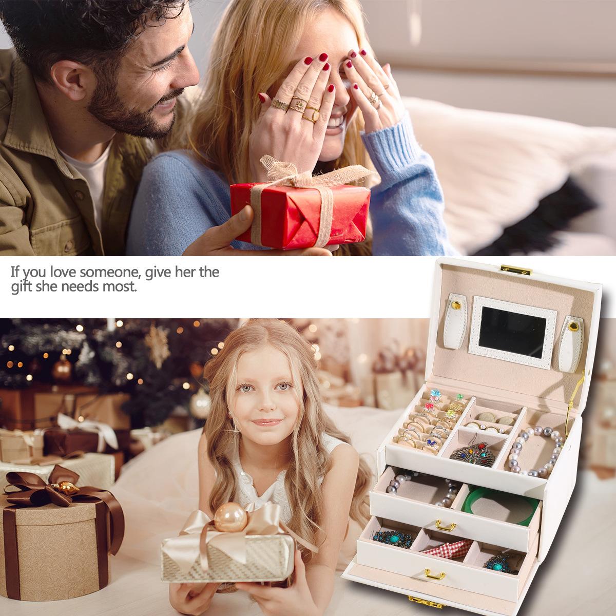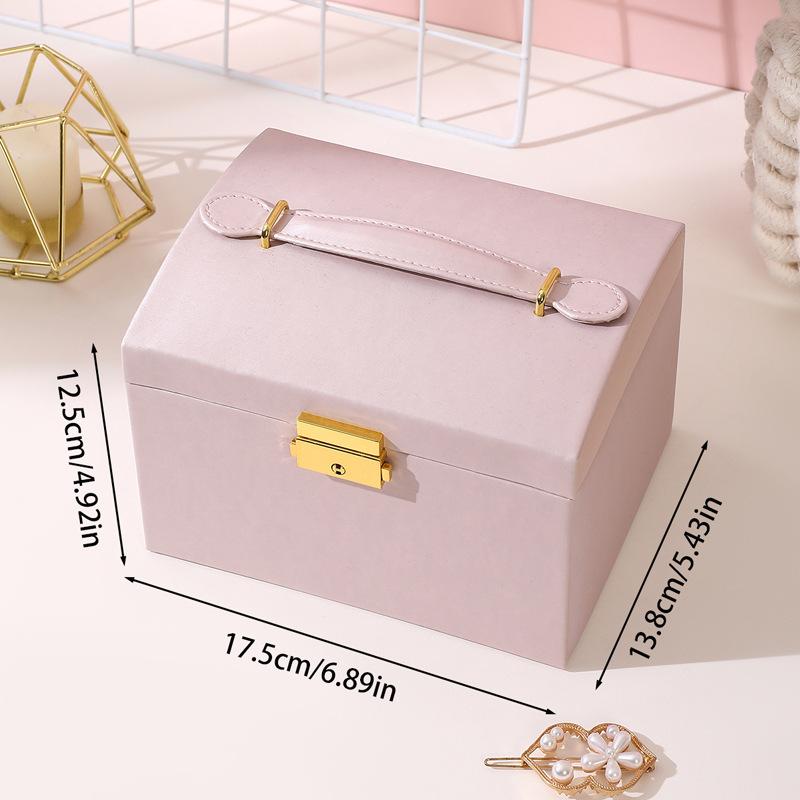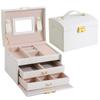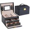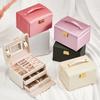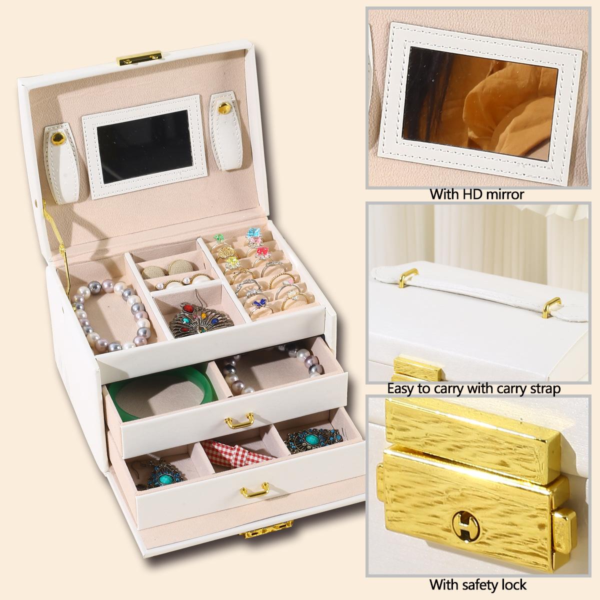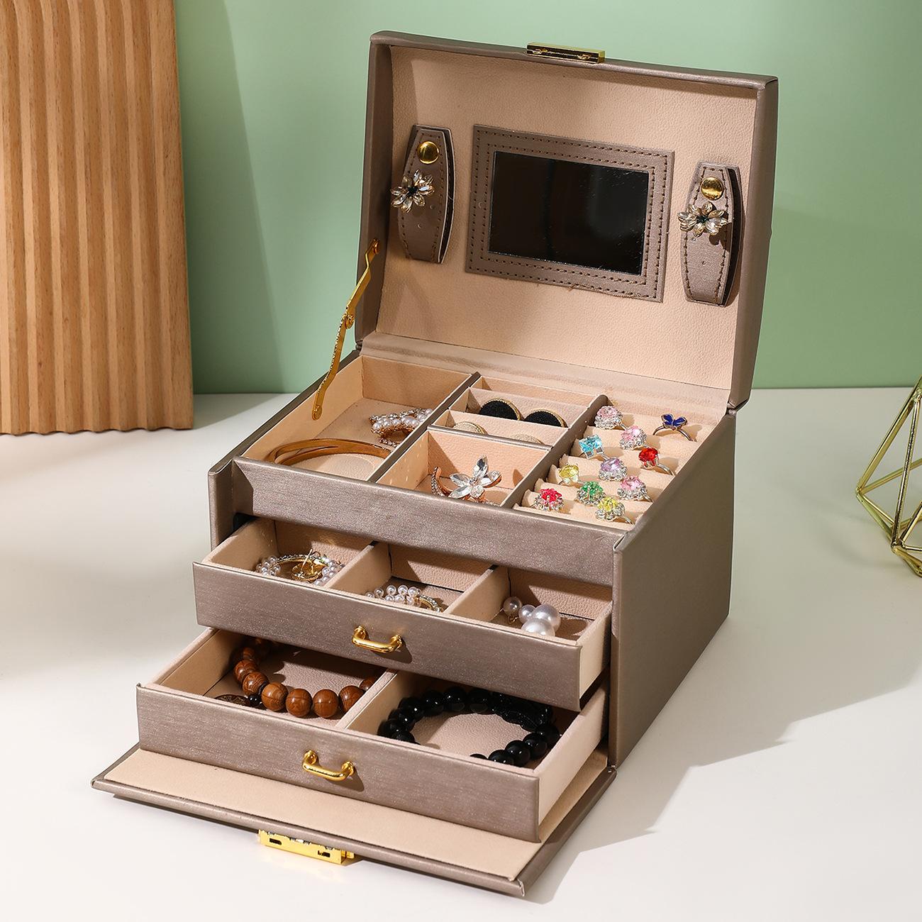Caja de joyería de alta calidad para collar y aretes, caja de joyería portátil de tres capas con cerradura, caja de almacenamiento de joyas al por mayor