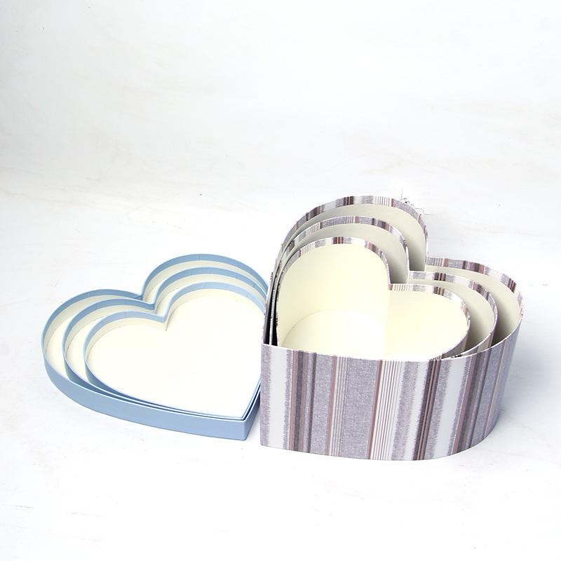 Caja de regalo de tres piezas en forma de corazón, caja de regalo a rayas, caja de regalo con patrón de tela, embalaje de flores, caja de regalo de mano de cartón, conjunto de tres piezas