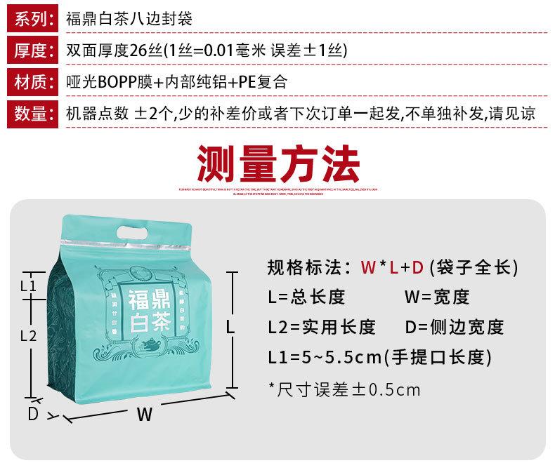 Bolsa de Empaque de Té Blanco de Fuding Bolsa de Papel de Aluminio Sellada por Ocho Lados Té Suelto Bolsa Autosellable Bolsa de Papel de Aluminio Puro Mate General de Alta Calidad