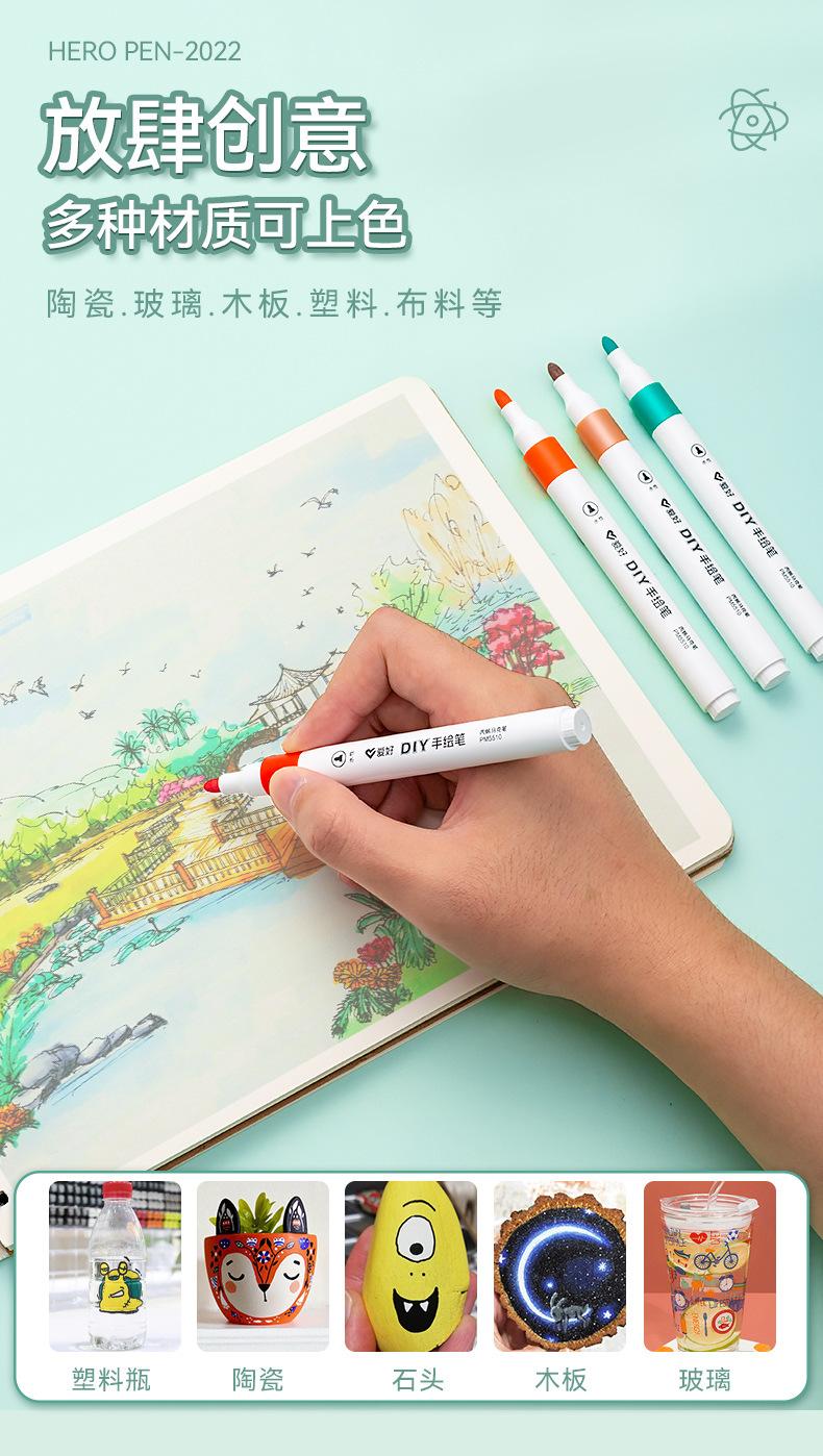Rotulador acrílico pintado a mano para estudiantes aficionados, 24 colores, tinta a base de agua, seguro y sin olor, papelería para estudiantes, venta al por mayor