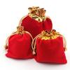 Bolsa de Terciopelo Rojo para Joyería Bolsa de Terciopelo Rojo Dorado Bolsa para Joyería Bolsa de Terciopelo Borde Dorado con Cordón de Campana Elástico