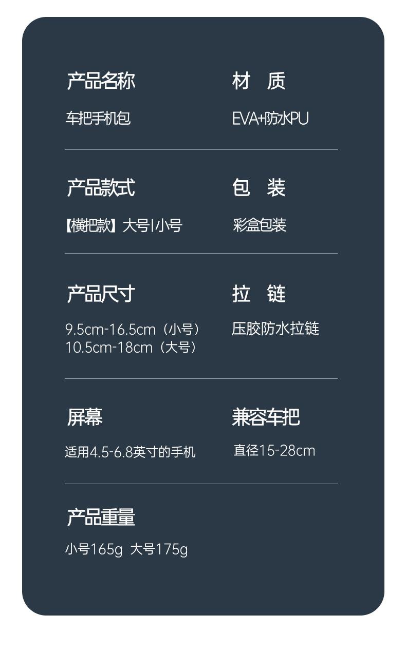 【Embalaje del producto】: Caja de color en inglés[Tamaño del embalaje]: Tamaño del manillar 11*3.5*28CM /Espejo retrovisor11*7*22CM[Peso del producto]: Modelo de manillar tamaño pequeño 157G tamaño grande 170G / modelo de espejo retrovisor tamaño pequeño 202G tamaño grande 217G