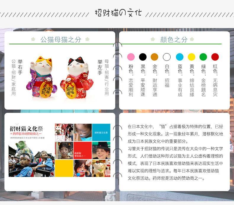 Gato de la suerte usualmenteusarHecho de cerámica, generalmente blanco, con una mano levantada en alto sobre la cabeza, haciendo un gesto para llamar a la gente. Generalmente, la mano izquierda de un gato de la fortuna está levantada para atraer la buena fortuna; la mano derecha está levantada para atraer la riqueza; ambas manos están levantadas al mismo tiempo, lo que significa que "riqueza" y "felicidad" se juntan. Además, la campana dorada que cuelga en el pecho del gato de la fortuna también significa buena suerte, riqueza, fortuna y destino. Los gatos de la fortuna de diferentes colores representan diferentes deseos de sus dueños, expresando la eterna esperanza humana de felicidad, satisfacción y buena suerte.