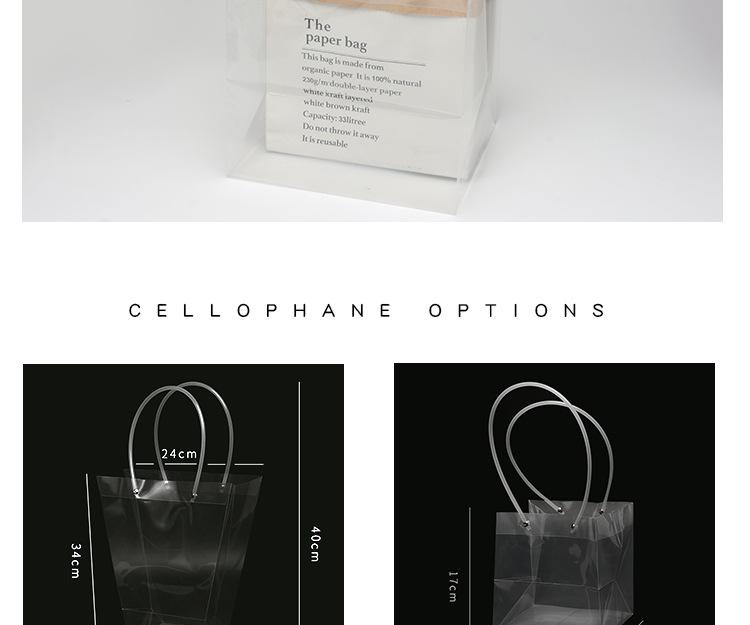 Bolsa de embalaje de flores portátil para arreglos florales, transparente, impermeable, material floral, regalo, caja de flores de PVC, venta al por mayor