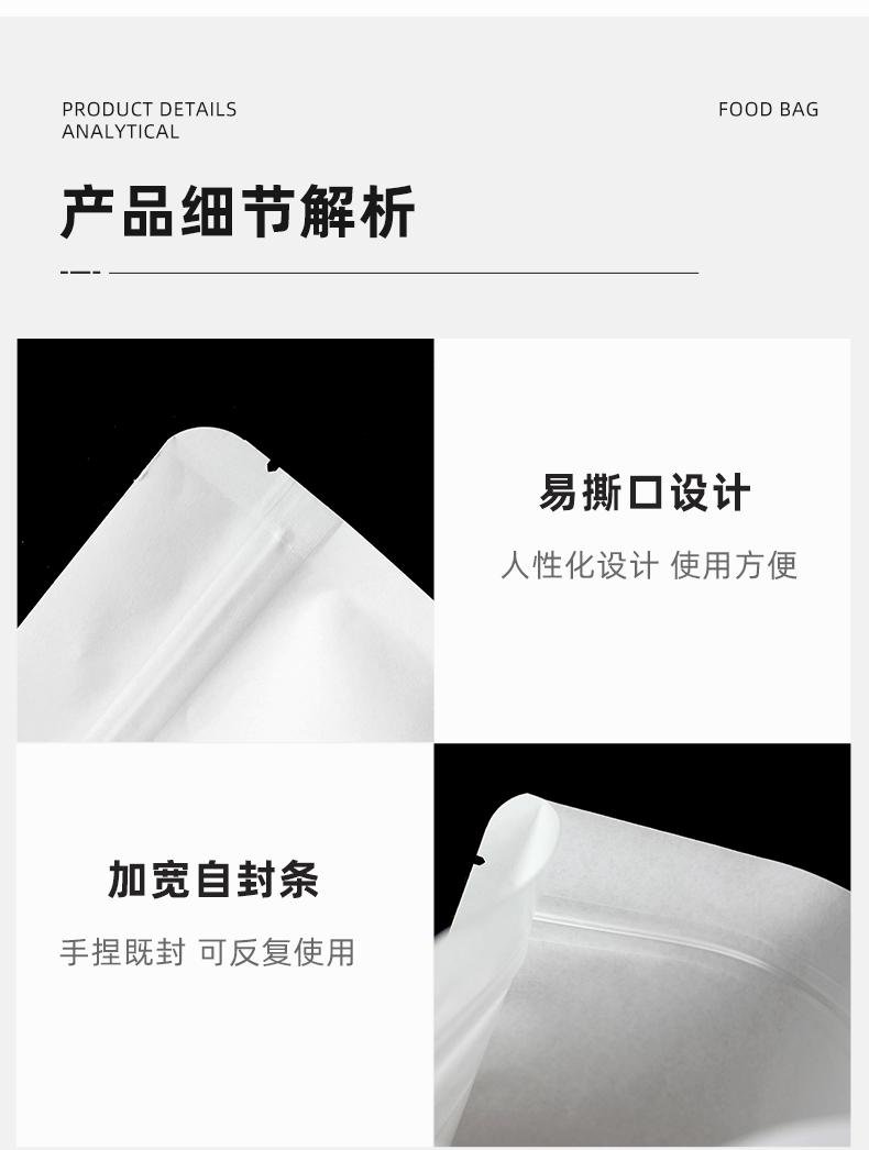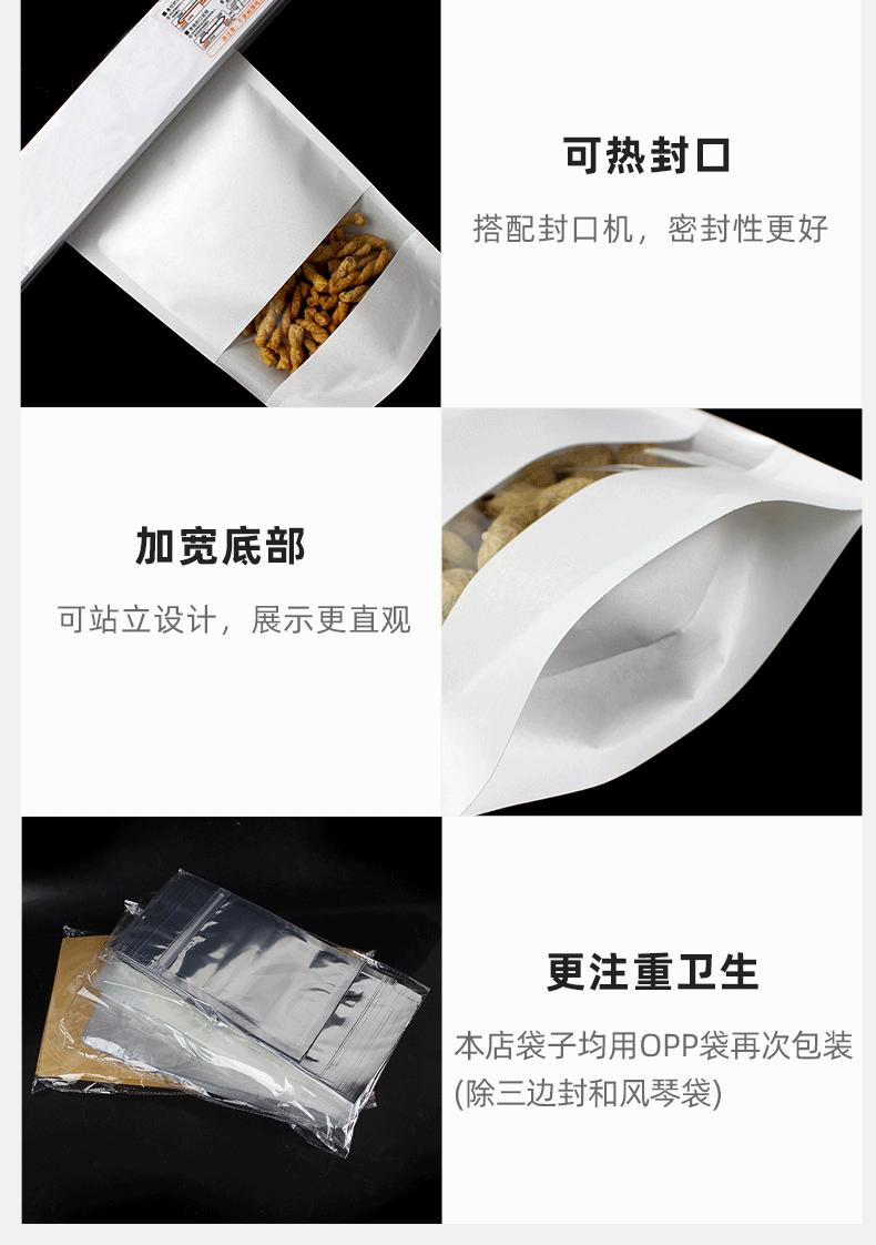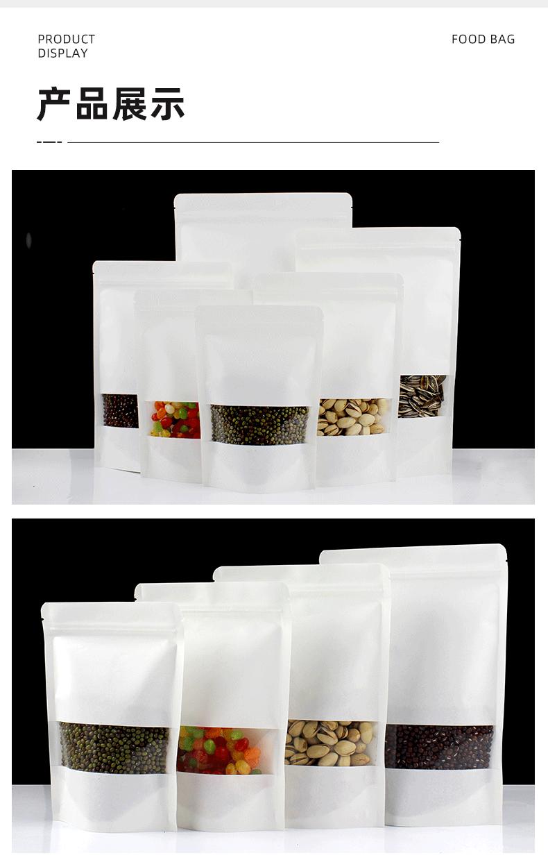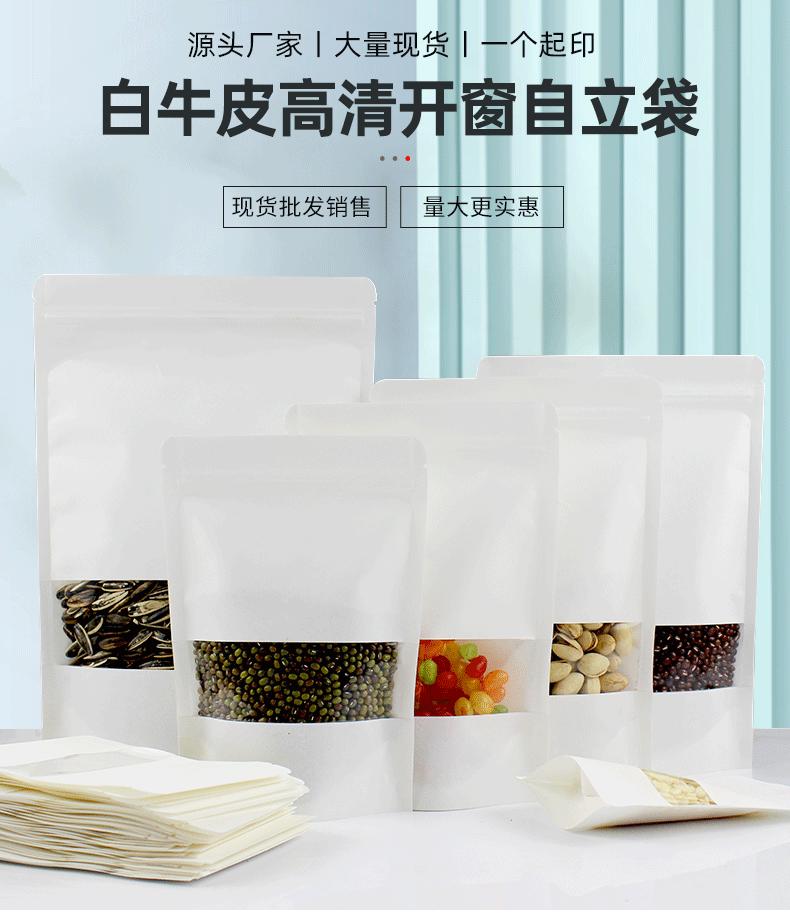Bolsa de papel kraft blanca con ventana, autoportante, autosellante, bolsa de té HD, bolsa de dulces, bolsa de envasado de alimentos, juego completo de muestras