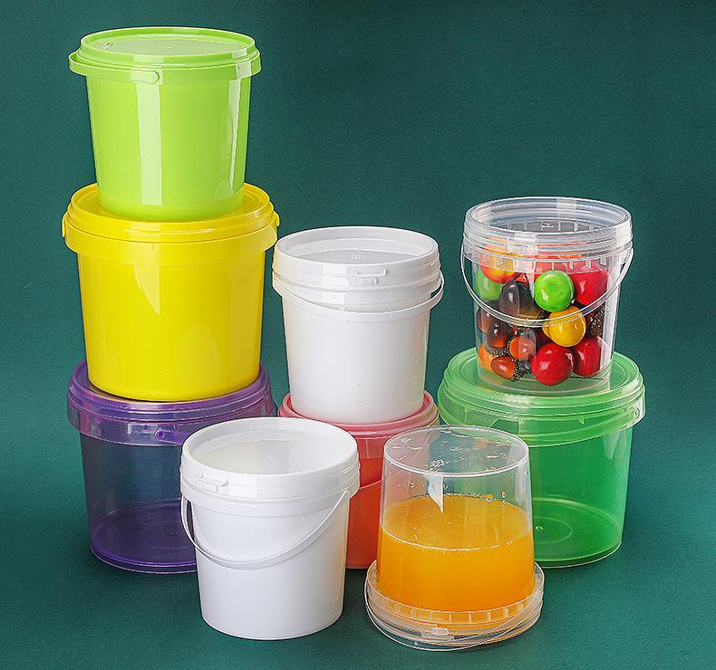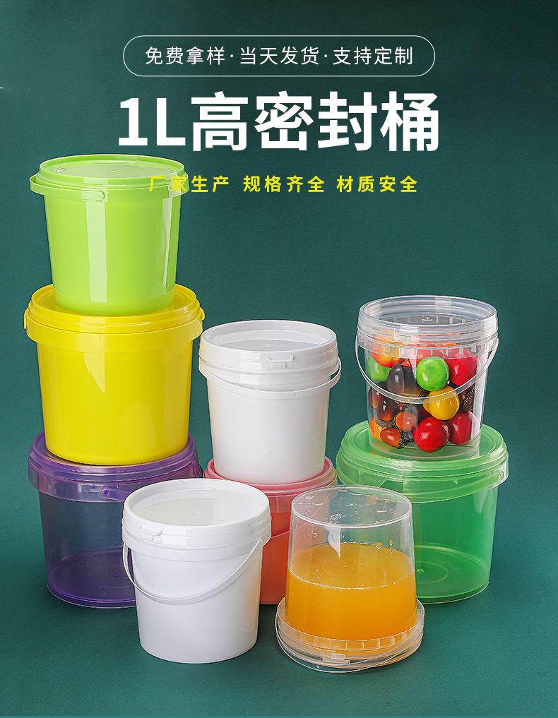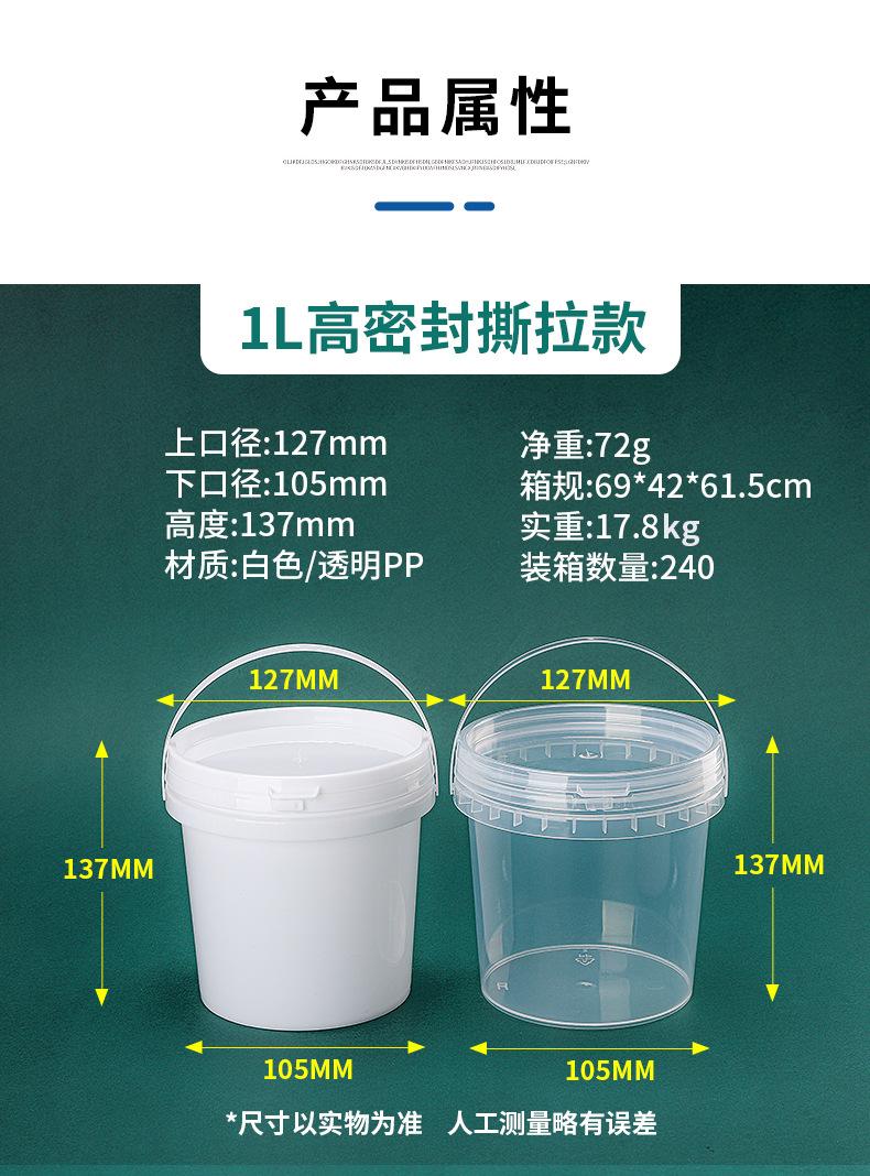 Cubo de plástico grueso de 1 litro con hebilla de fácil apertura al por mayor, vaso para salsa, snack, mariscos, té con leche, cubo de embalaje, cubo pequeño