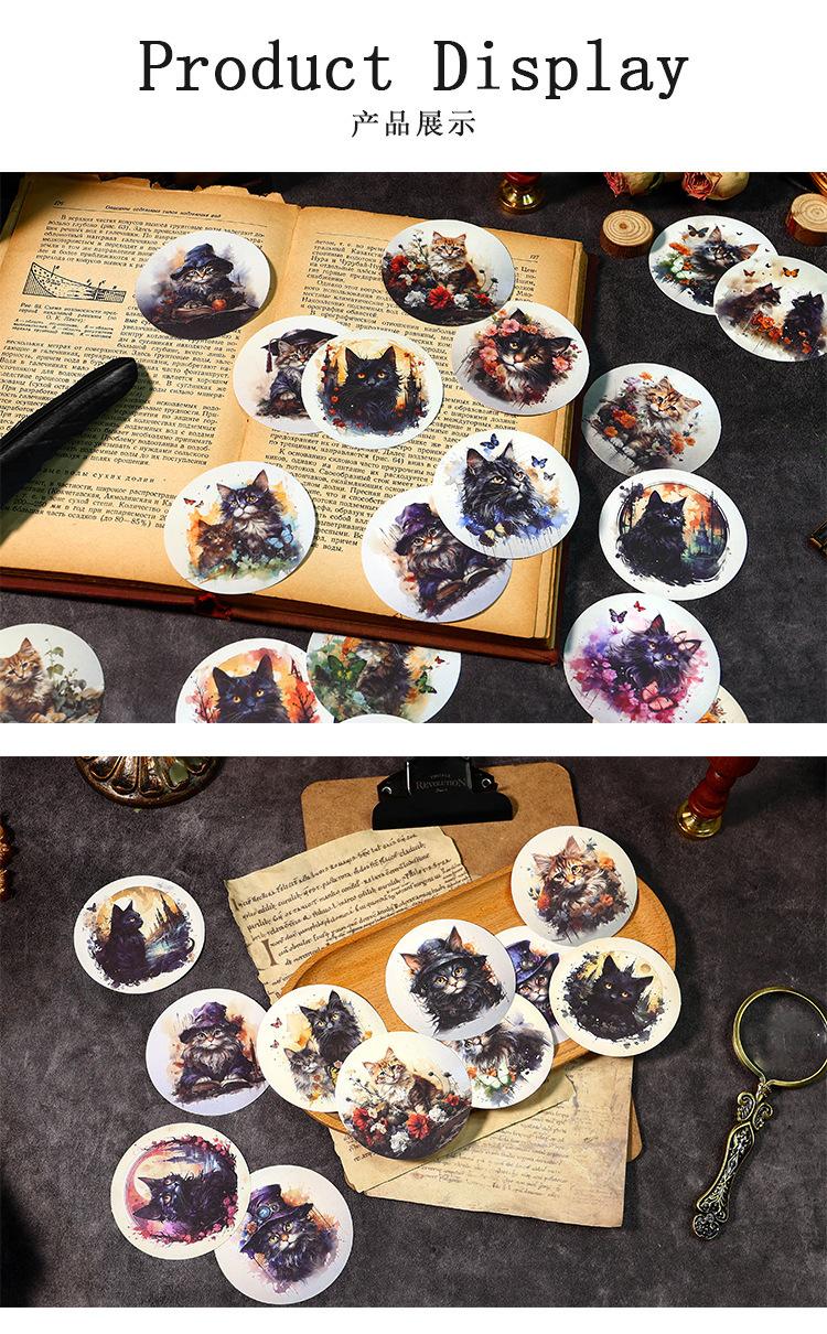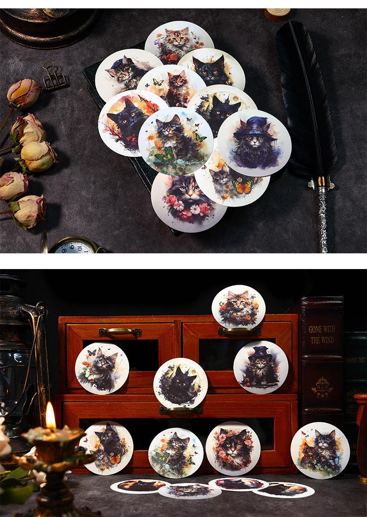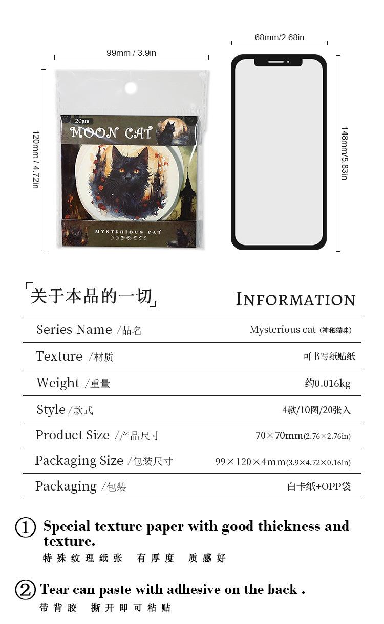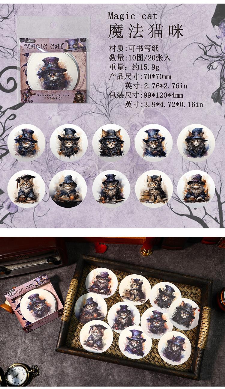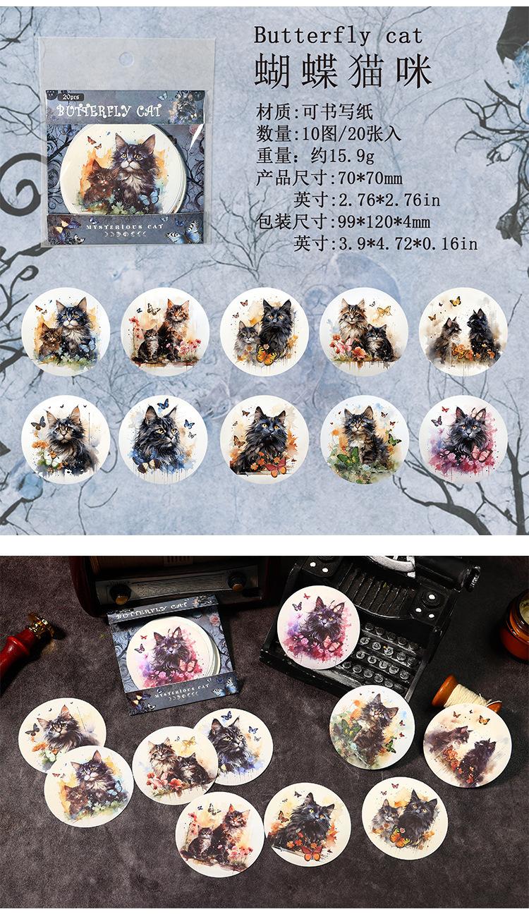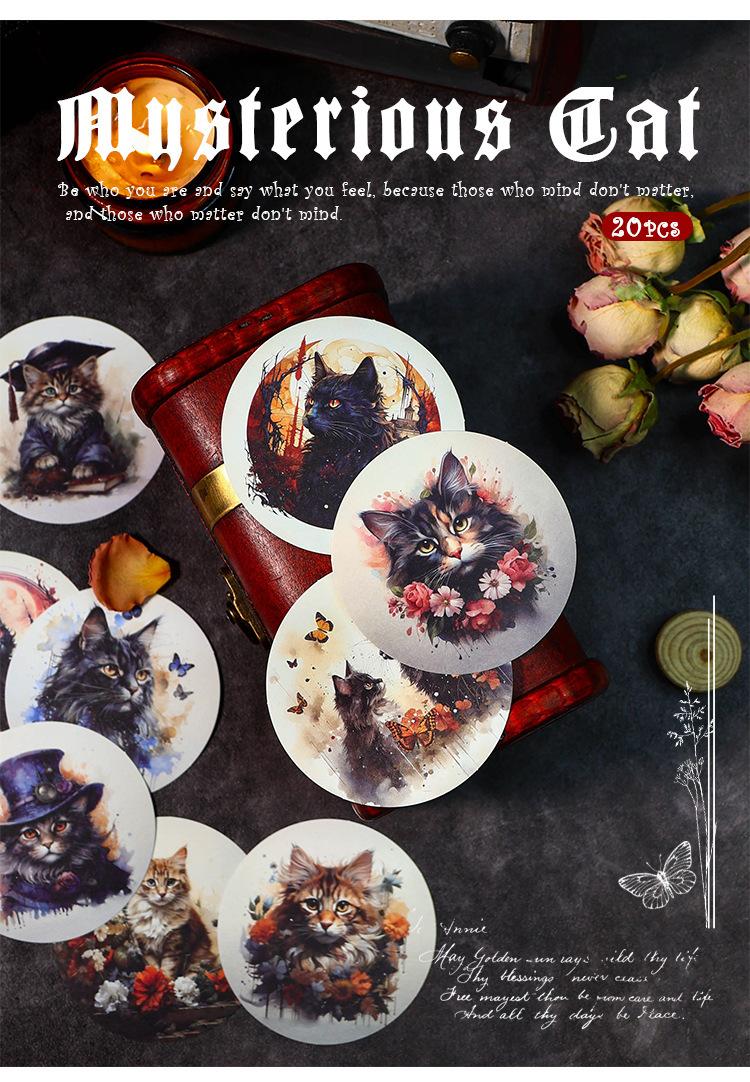 Stickers de bosque antiguo serie de gato misterioso flor vintage animal material para diario collage 20 piezas en 4 modelos
