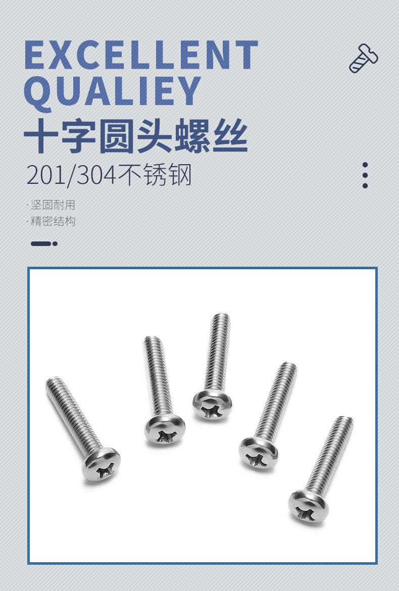 Tornillos de Cabeza Redonda Cruz Bichu 201 Acero Inoxidable Pm Cabeza Pan Ranura Cruzada Tornillos de Máquina Empotrados Gb818M2-,M10