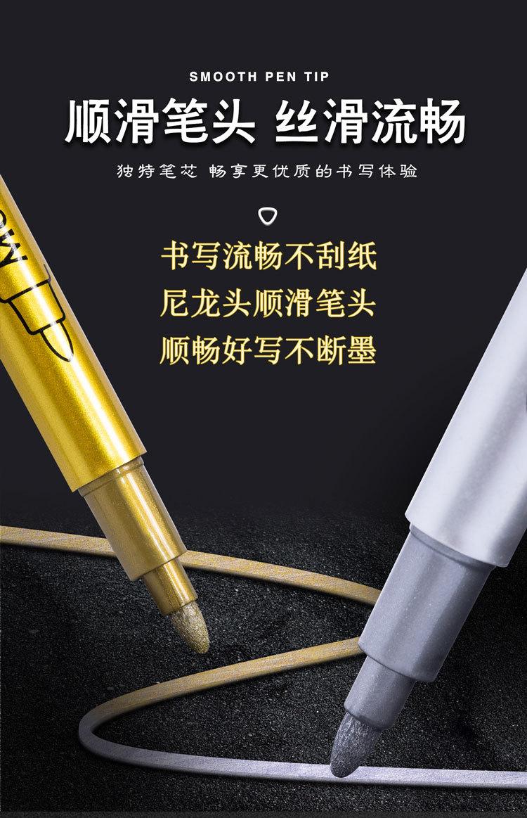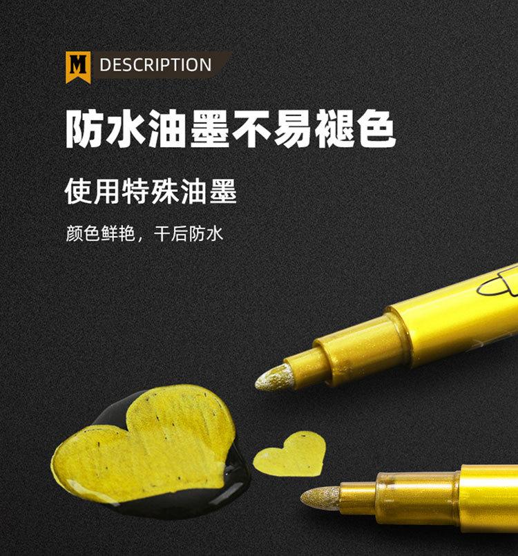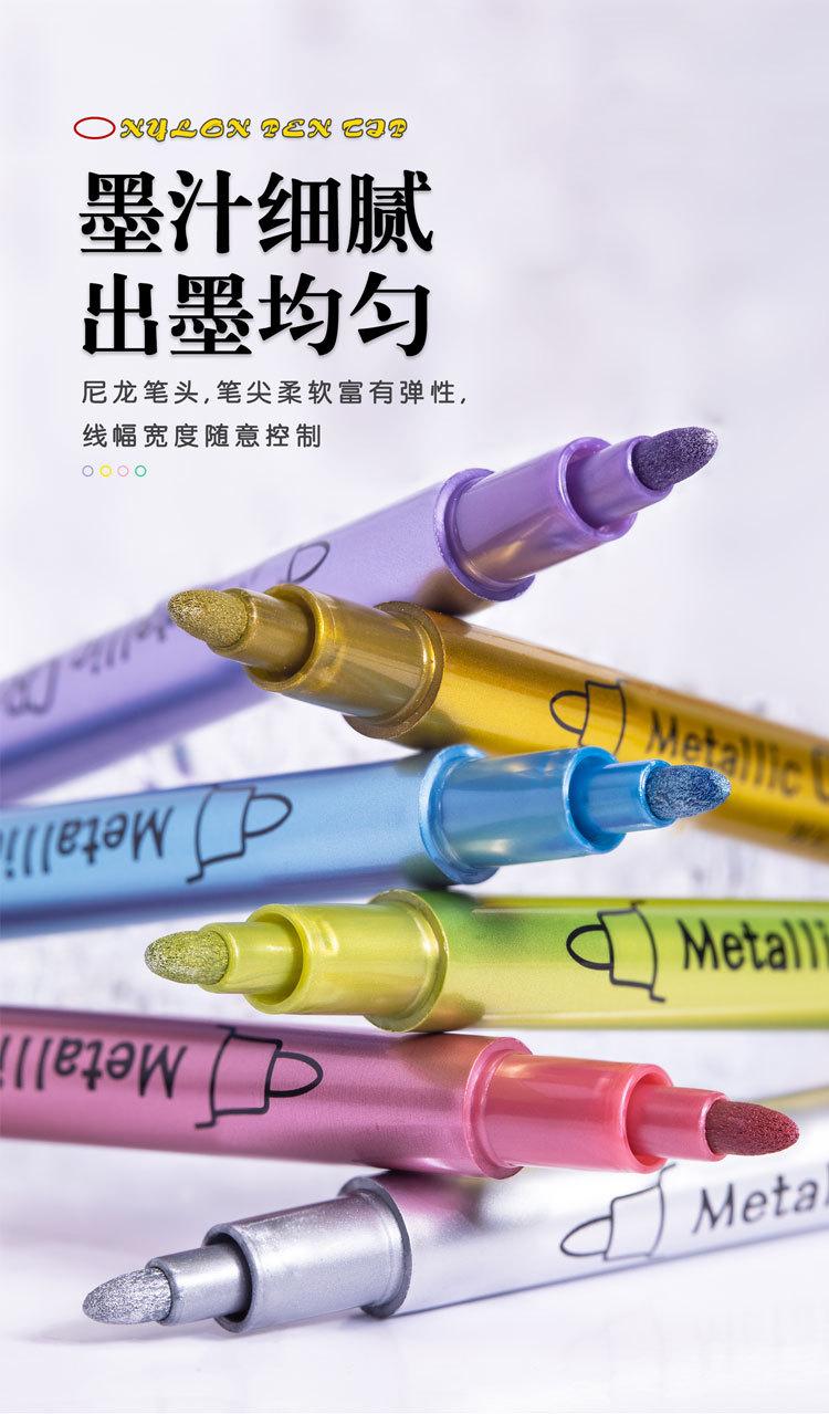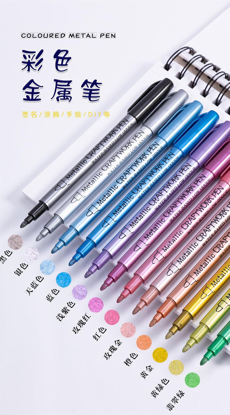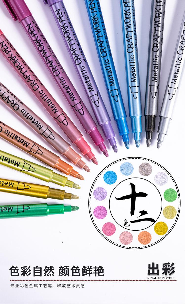 Marcador metálico de color Guangna 550S GN, marcador a base de agua, punta redonda, juego de 12 colores, bolígrafo de firma de color metálico