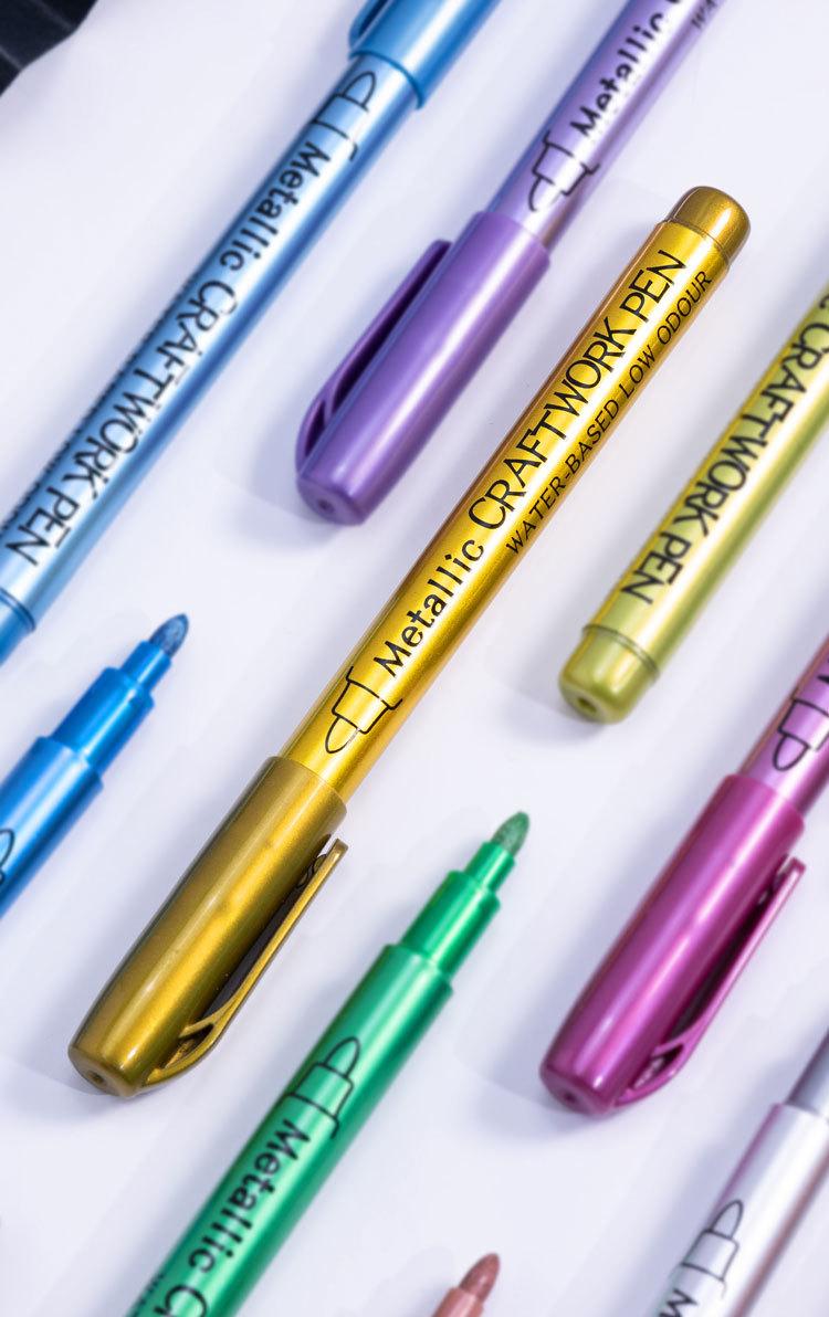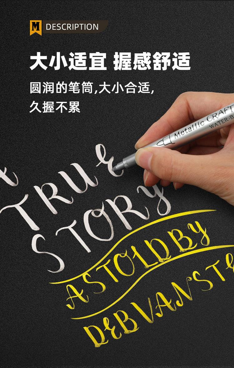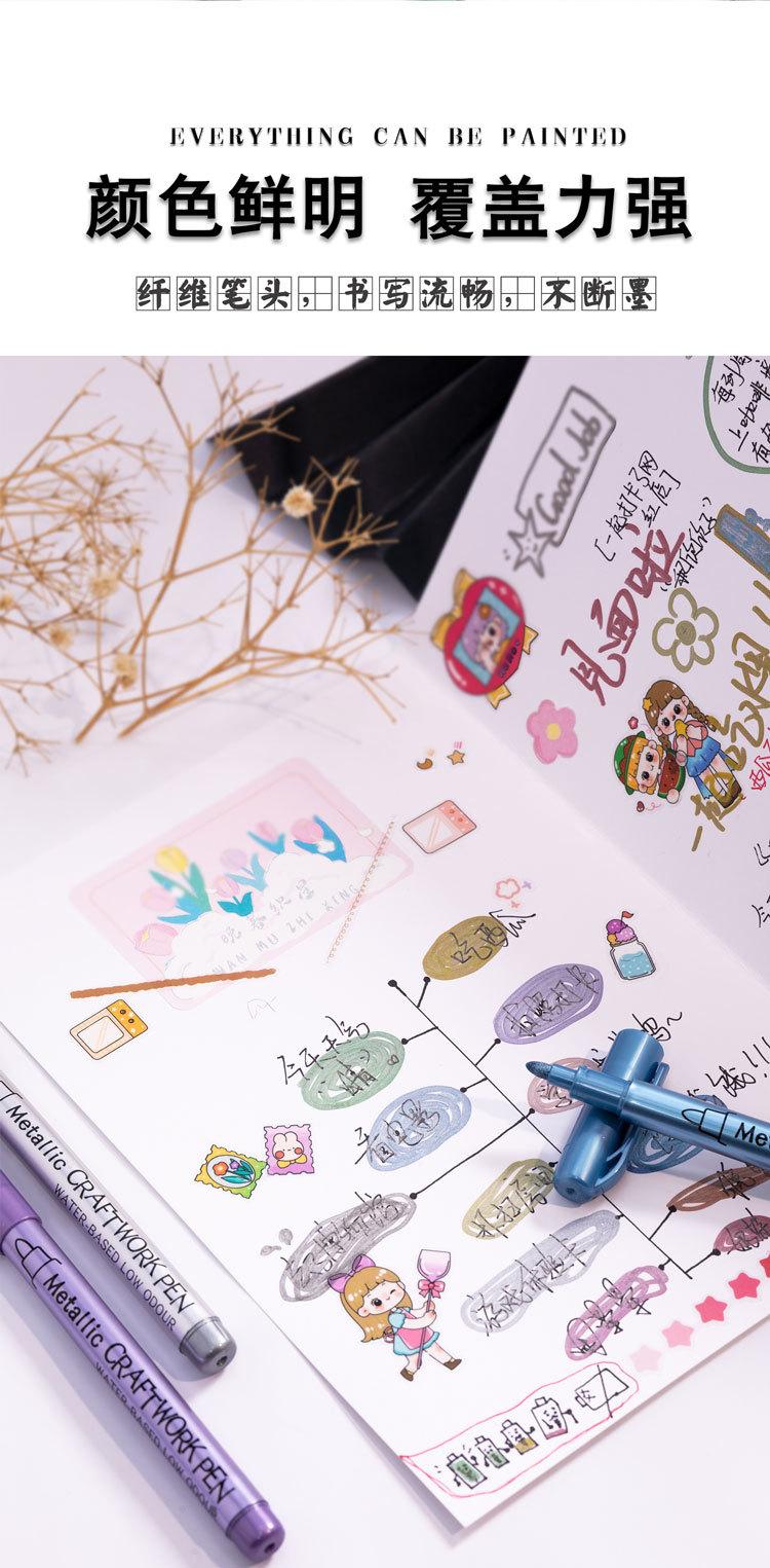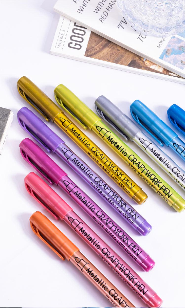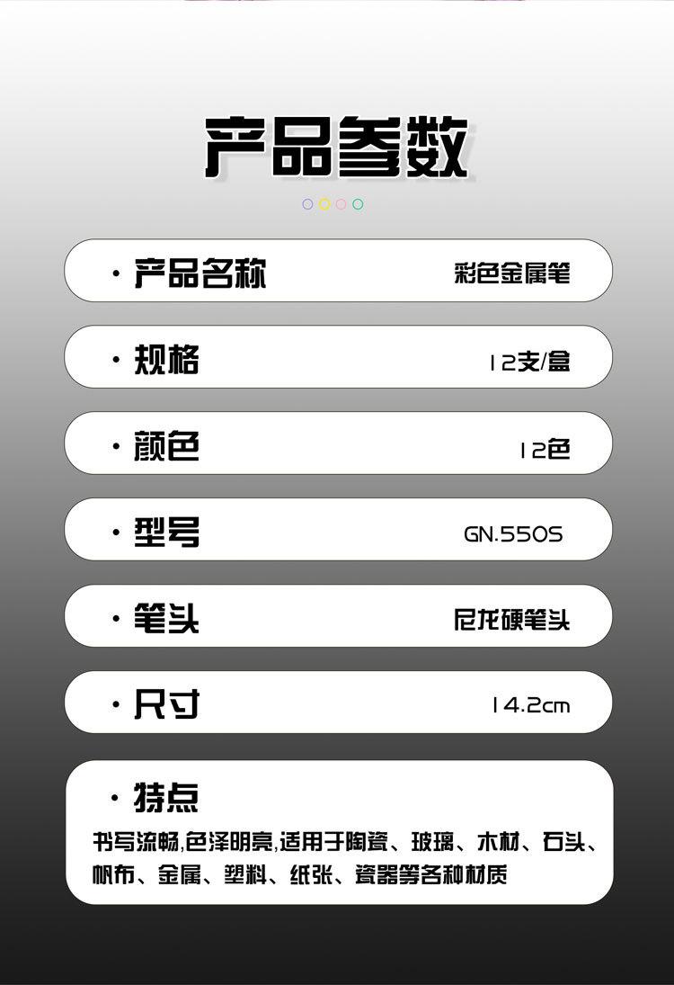 Marcador metálico de color Guangna 550S GN, marcador a base de agua, punta redonda, juego de 12 colores, bolígrafo de firma de color metálico