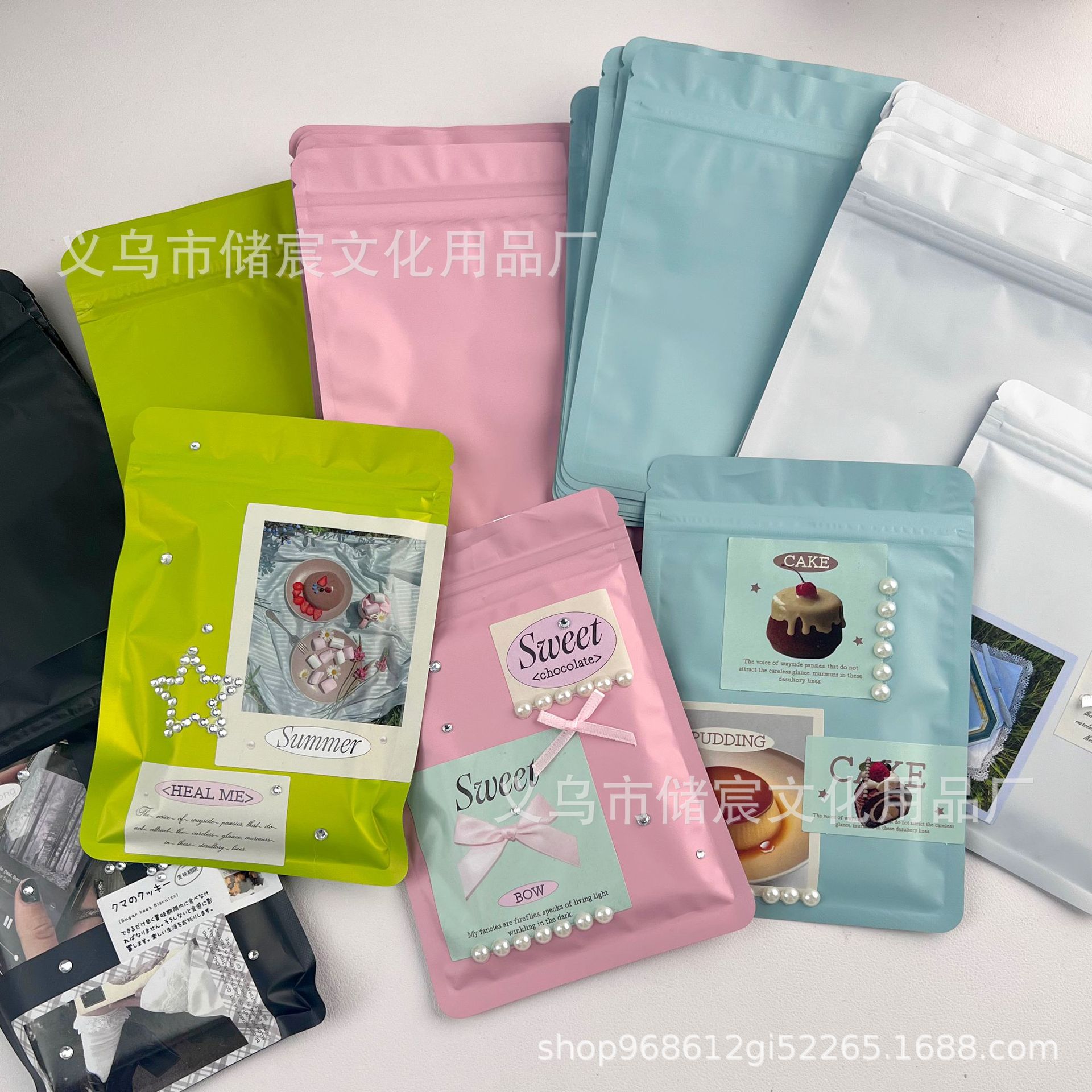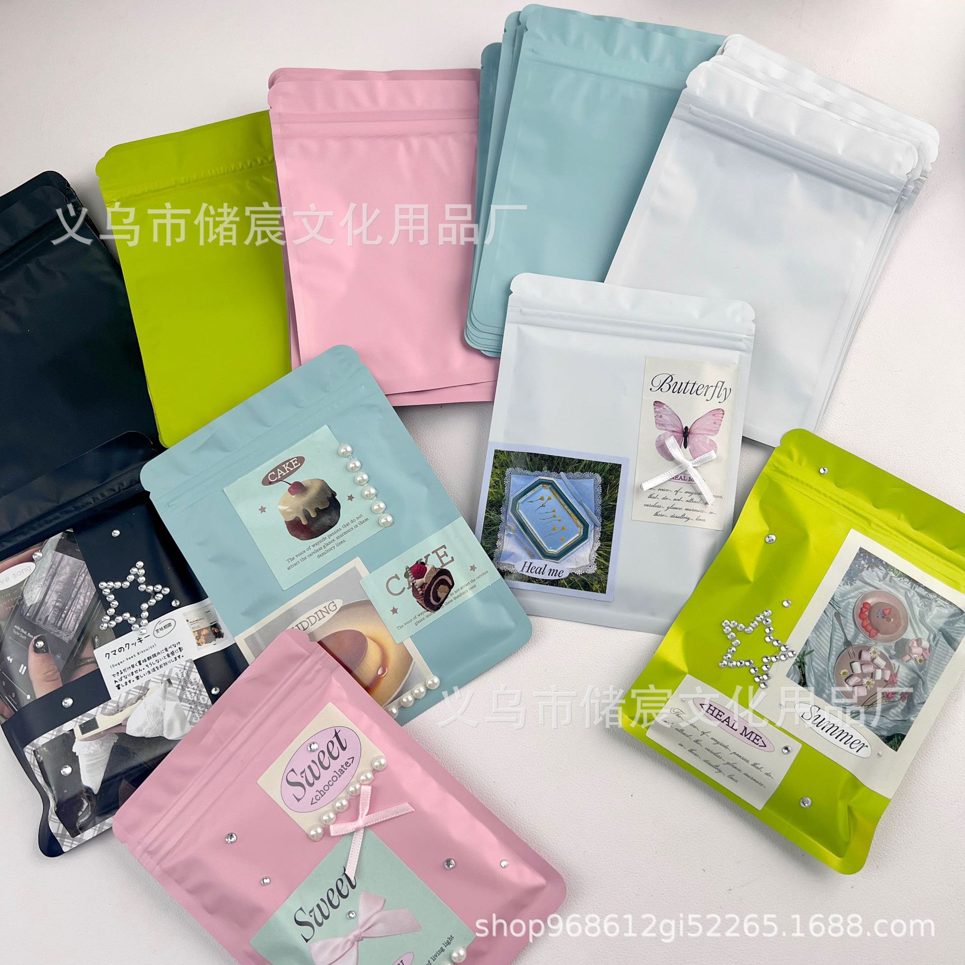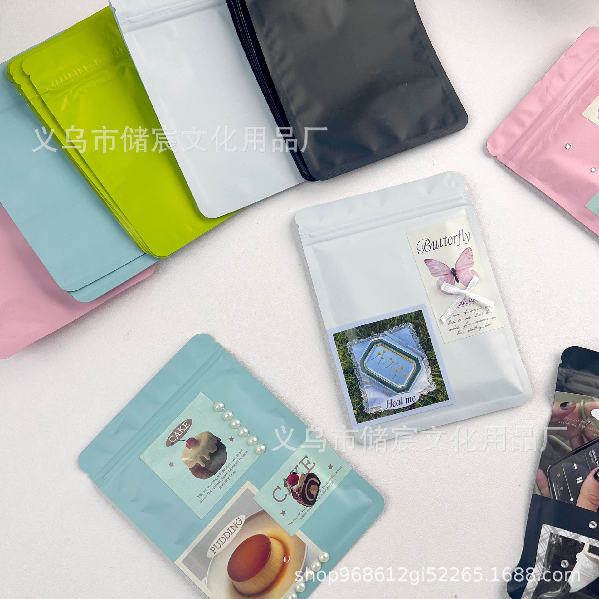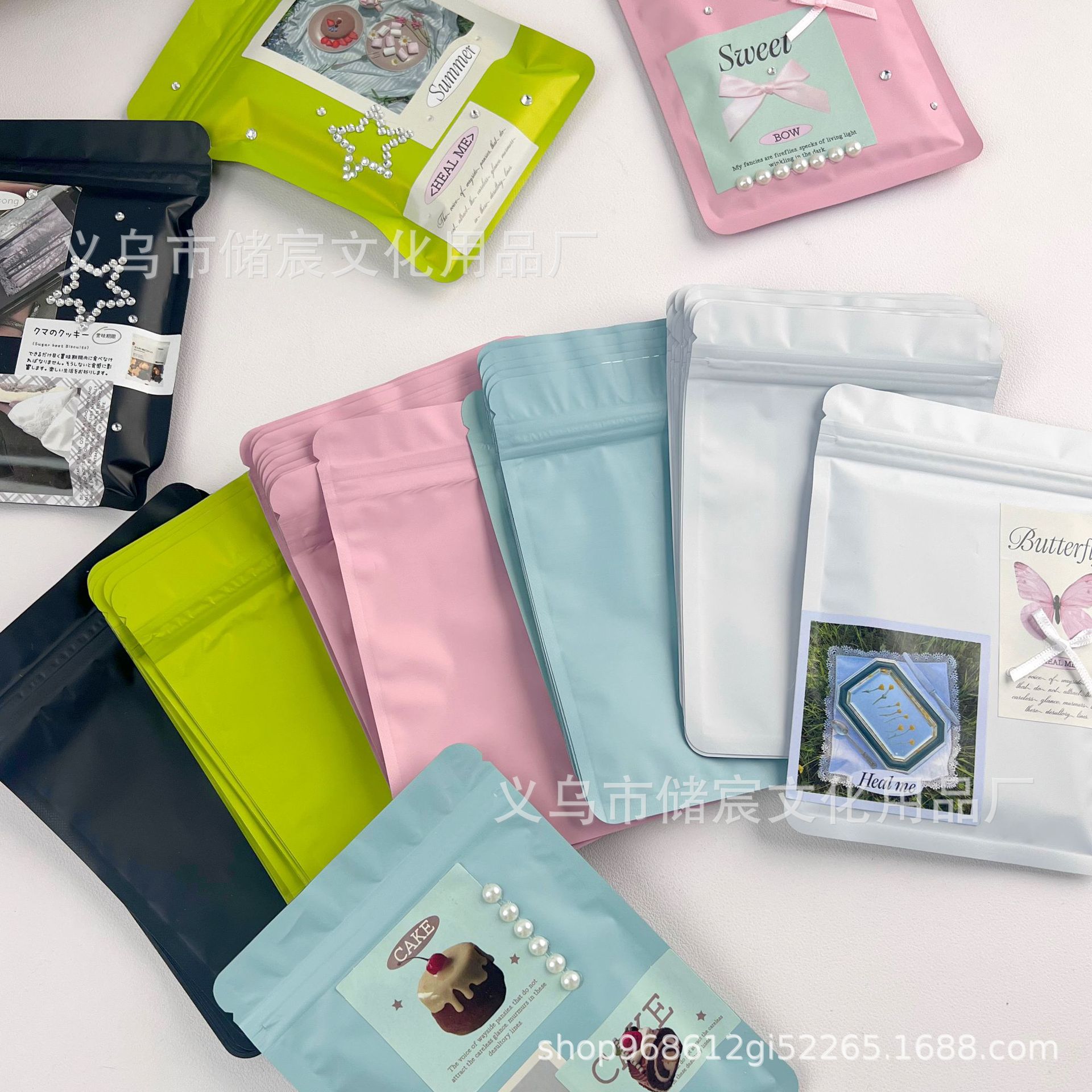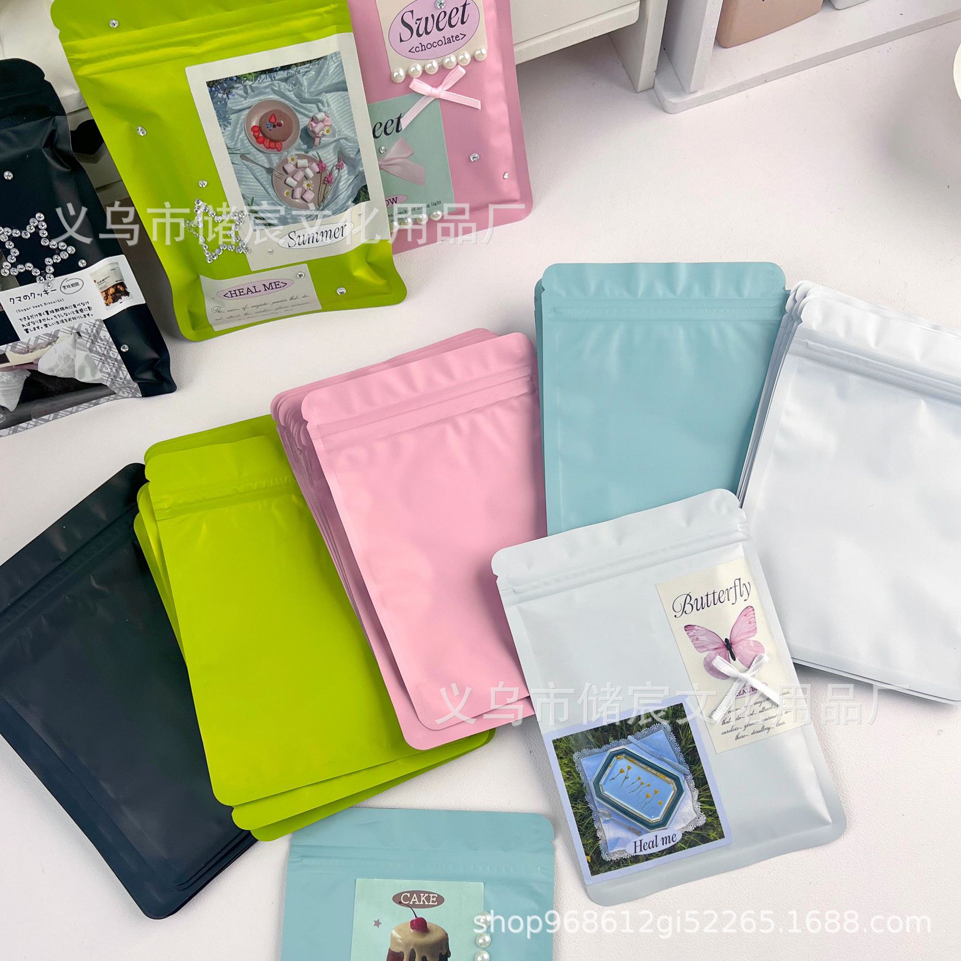 Bolsa autosellante mate esmerilada de color macarrón, con ranuras para tarjetas, pequeña, para regalo, con sellado