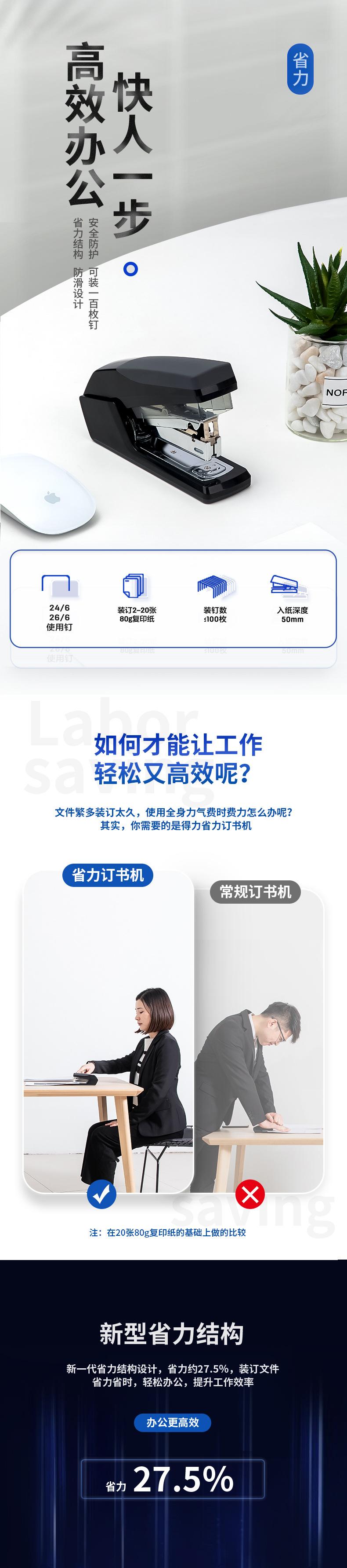 Grapadora Deli 0368 que ahorra mano de obra, grapadora sencilla para oficina, negocios, datos, grapadora para estudiantes