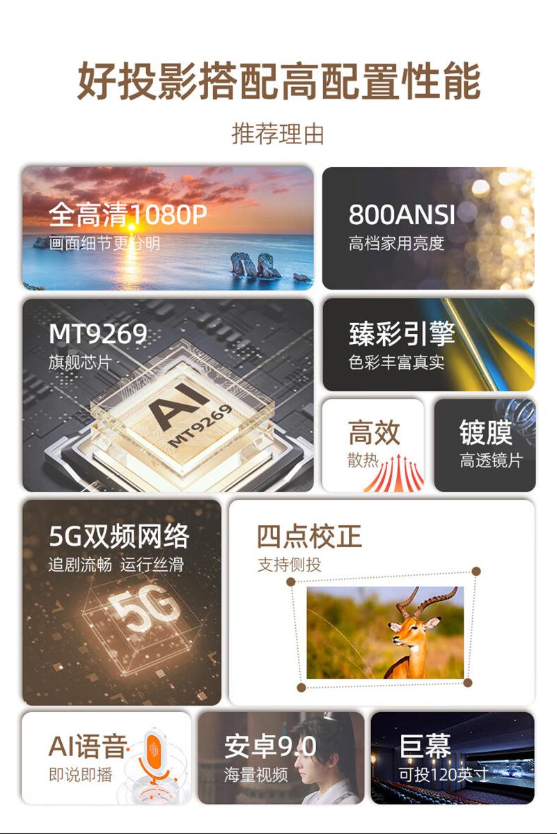 Xinyou Proyector Inteligente Android Inalámbrico Wifi Voz Led Hd 1080P Portátil para el Hogar