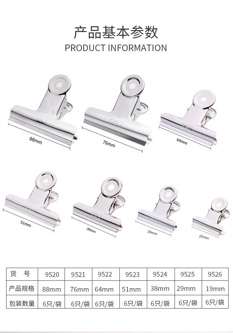 Deli Acero Inoxidable Clip de Hierro 9520 Grande, Mediano y Pequeño Clip Redondo de Hierro para Boletos Suministros de Oficina Clip Metálico Fijo para Billetes