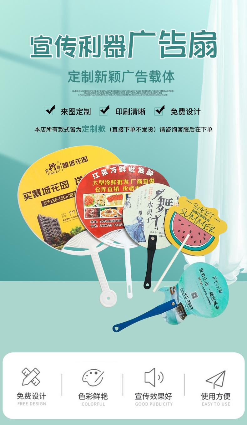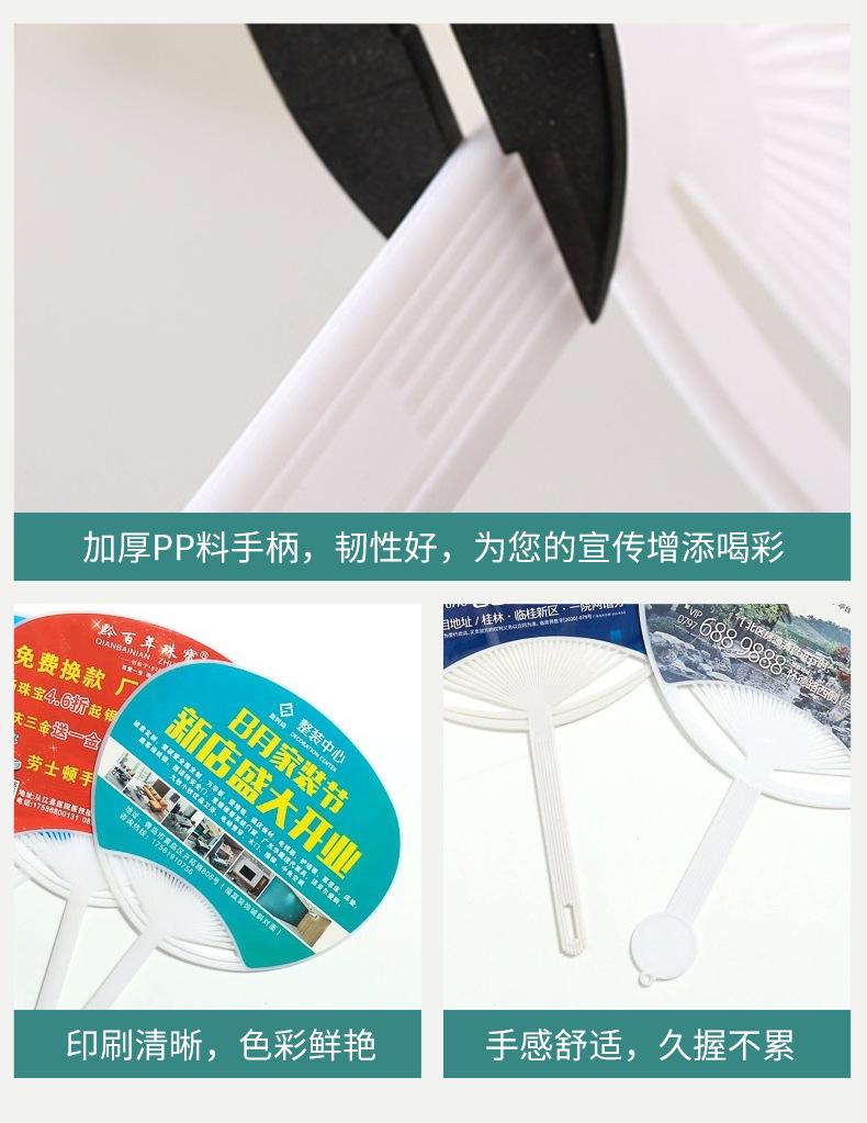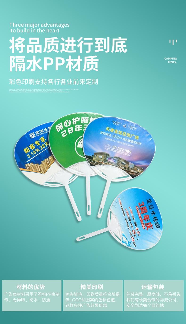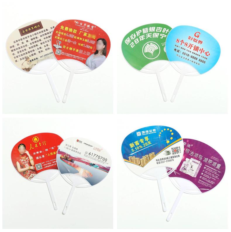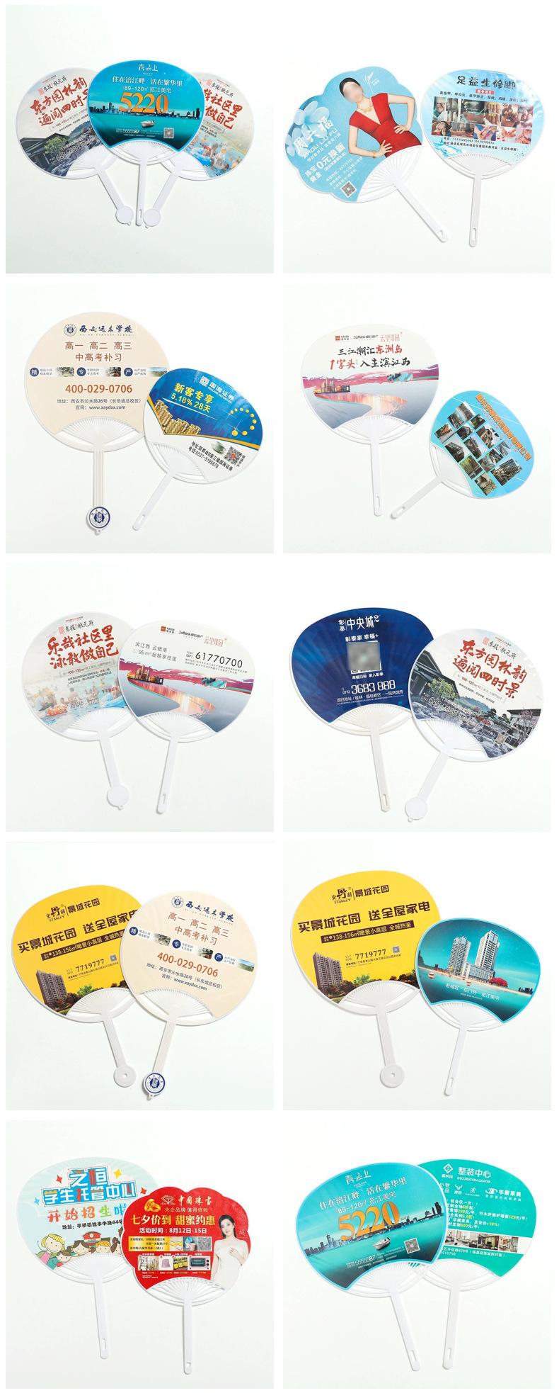 Ventilador publicitario de regalo directo de fábrica, ventilador de plástico, ventilador de plástico PP personalizado, joyería, ventilador promocional de bienes raíces, impresión de logotipo
