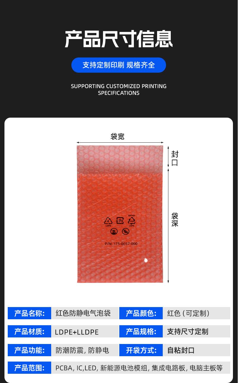 Red double-layer anti-static bubble bag [free sample]; 15*20cm [stable environmental resistance value 0⁹ω—10¹¹ω]; 2-20 [customized specifications]