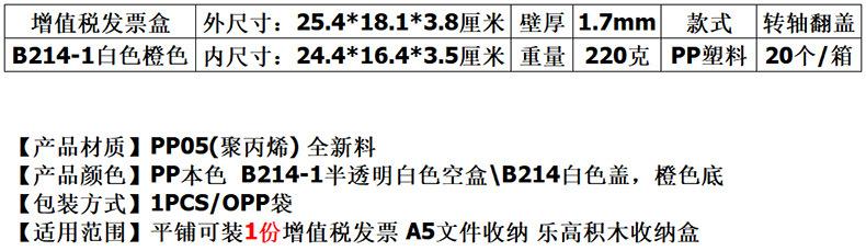 EKB215-1 Caja para facturas de IVA Caja para almacenamiento de documentos en papel tamaño A4 Caja para almacenamiento de datos de archivo Caja de plástico PP¥15 Compre ya | EKB222-1 Caja de plástico rectangular transparente para guardar facturas de IVA, tamaño A4, para archivar contratos y datos¥25 Compre ya | EKB217-1 Caja de almacenamiento para documentos, documentos, contratos, archivos, datos, organizadores, plástico, venta al por mayor, tamaño A4¥16 Compre ya | EKB219-1 Caja vacía Century Good Box A5 Caja de factura de IVA Caja rectangular de plástico transparente Caja de almacenamiento de PP¥10 Compre ya | ||