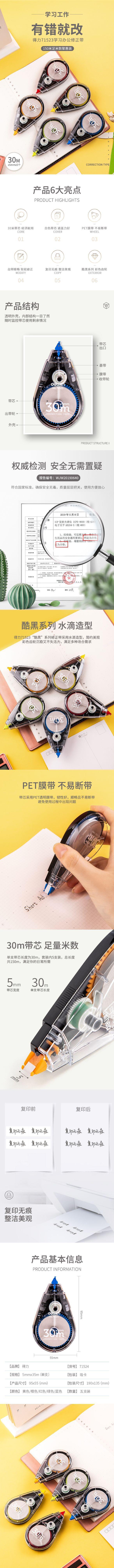 Cinta correctora Deli 71523, cinta correctora de 5 mm x 30 m, cinta correctora creativa, papelería para estudiantes, 5 unidades por tarjeta