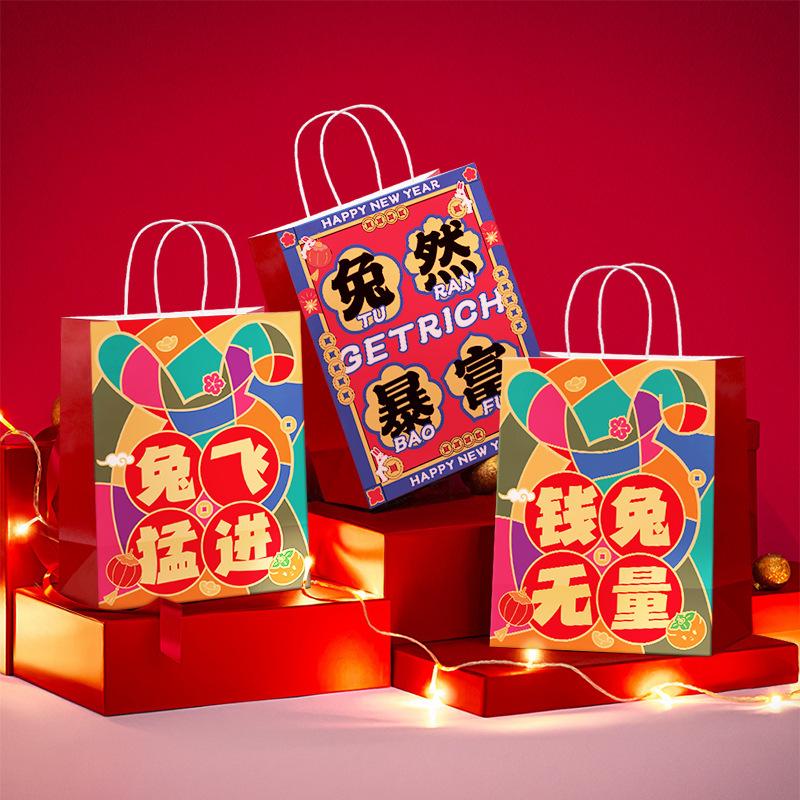 Bolsa de regalo navideña, bolso de papel Kraft, bolsa de regalo de mano para festivales de bodas, embalaje de regalo festivo de moda nacional