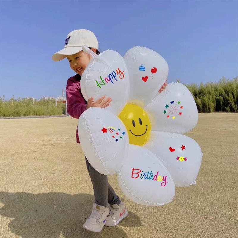 Large curved color cake [64*102cm]], Large smiley daisy sticker "100*97cm], Polo Dot Photo Frame Balloon, Pink...