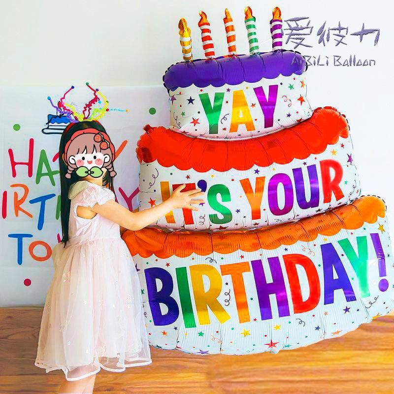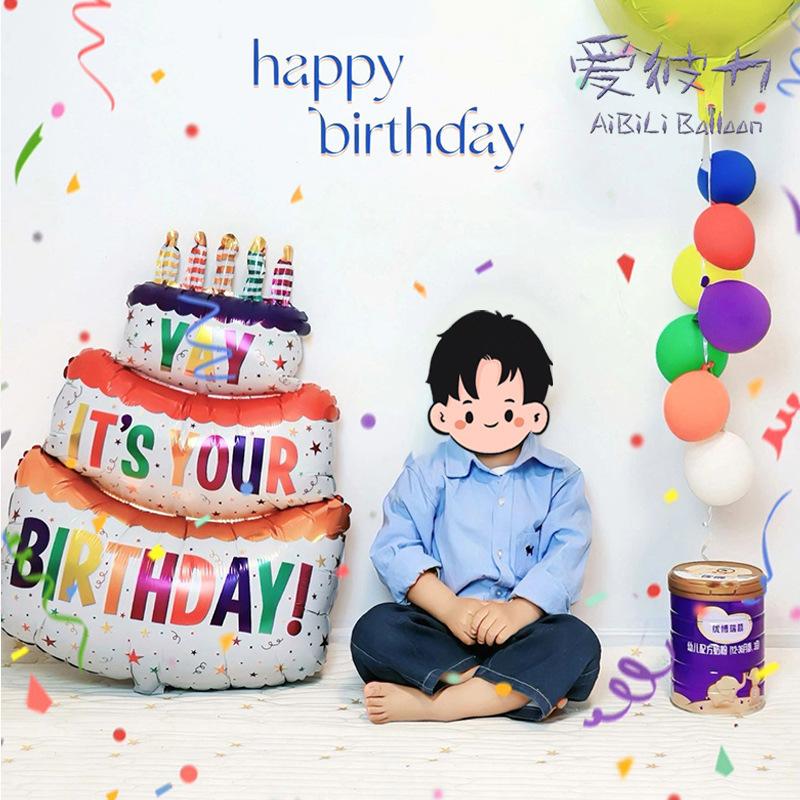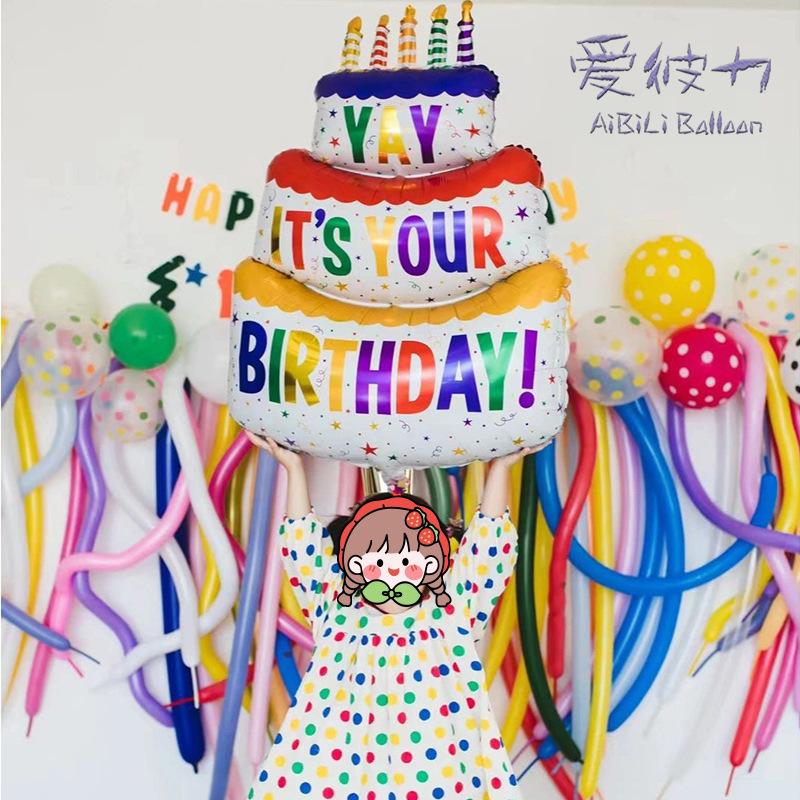 Pastel de cumpleaños de dibujos animados para niña de un año, decoración con globos, diseño de escena de fiesta, accesorios fotográficos digitales creativos