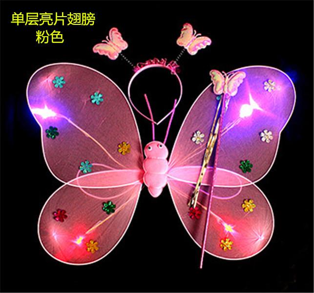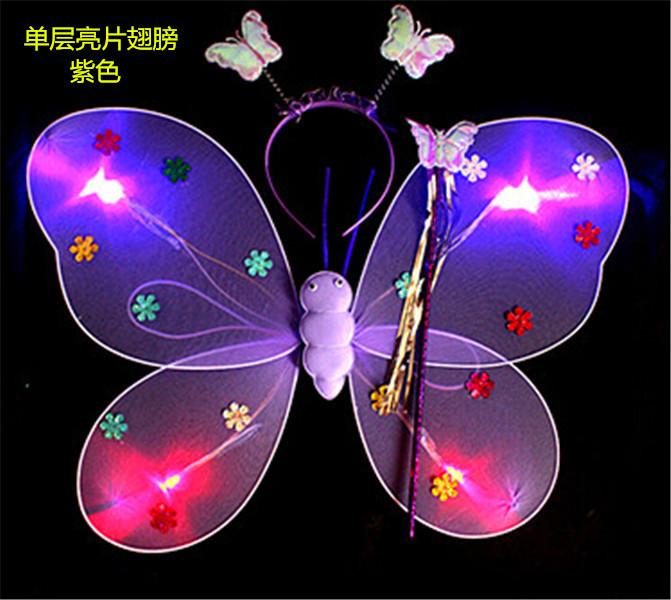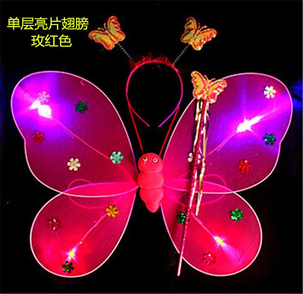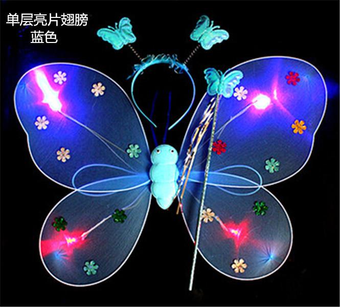 Alas de mariposa luminosas de cuatro piezas, disfraz de actuación, accesorios de actuación, conjunto de tres piezas de alas de mariposa luminosas dobles
