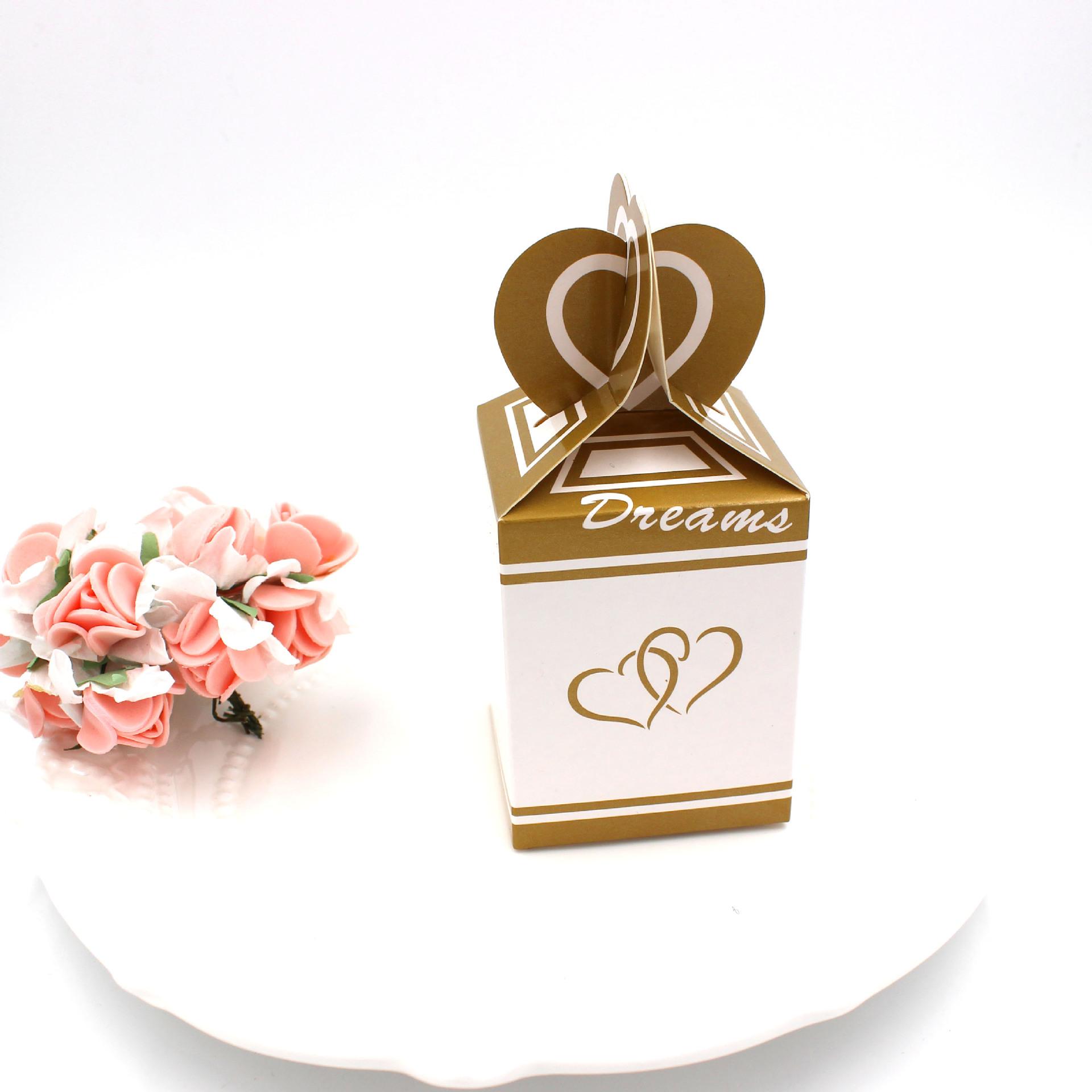 Características del producto: Esta caja de dulces es única y utiliza el elemento principal del matrimonio, el amor, como una característica típica. Está hecha de cartón impreso de alta calidad, con colores de impresión de alta gama y laminación para hacer el producto más exclusivo. Se envía plana, lo que hace que sea muy fácil para los amigos novatos doblar la caja de dulces terminada y pegarla fácilmente. Los detalles están bien cuidados y se utiliza a menudo en cajas de regalo de boda.